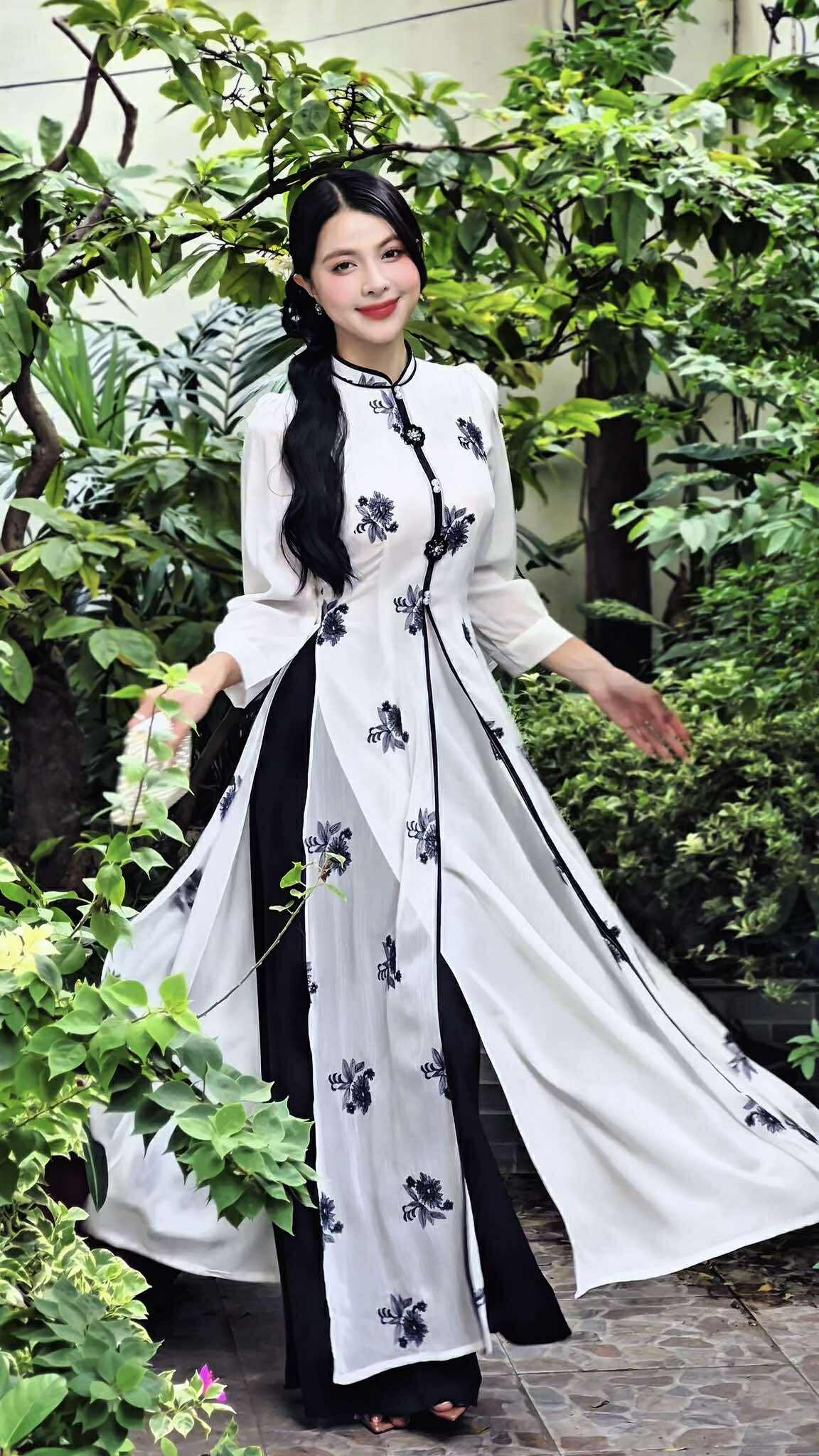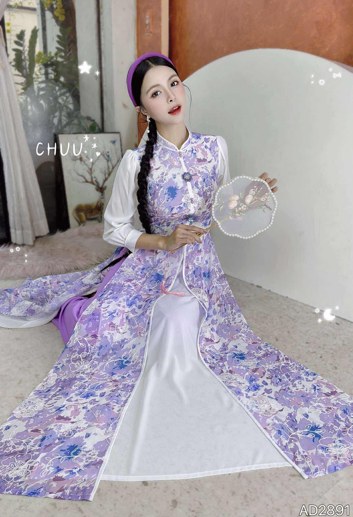 Áo Dài 4T Hoa Cẩm Đen AD2891 (áo lẻ) KHUYẾN MÃI - ƯU ĐÃI