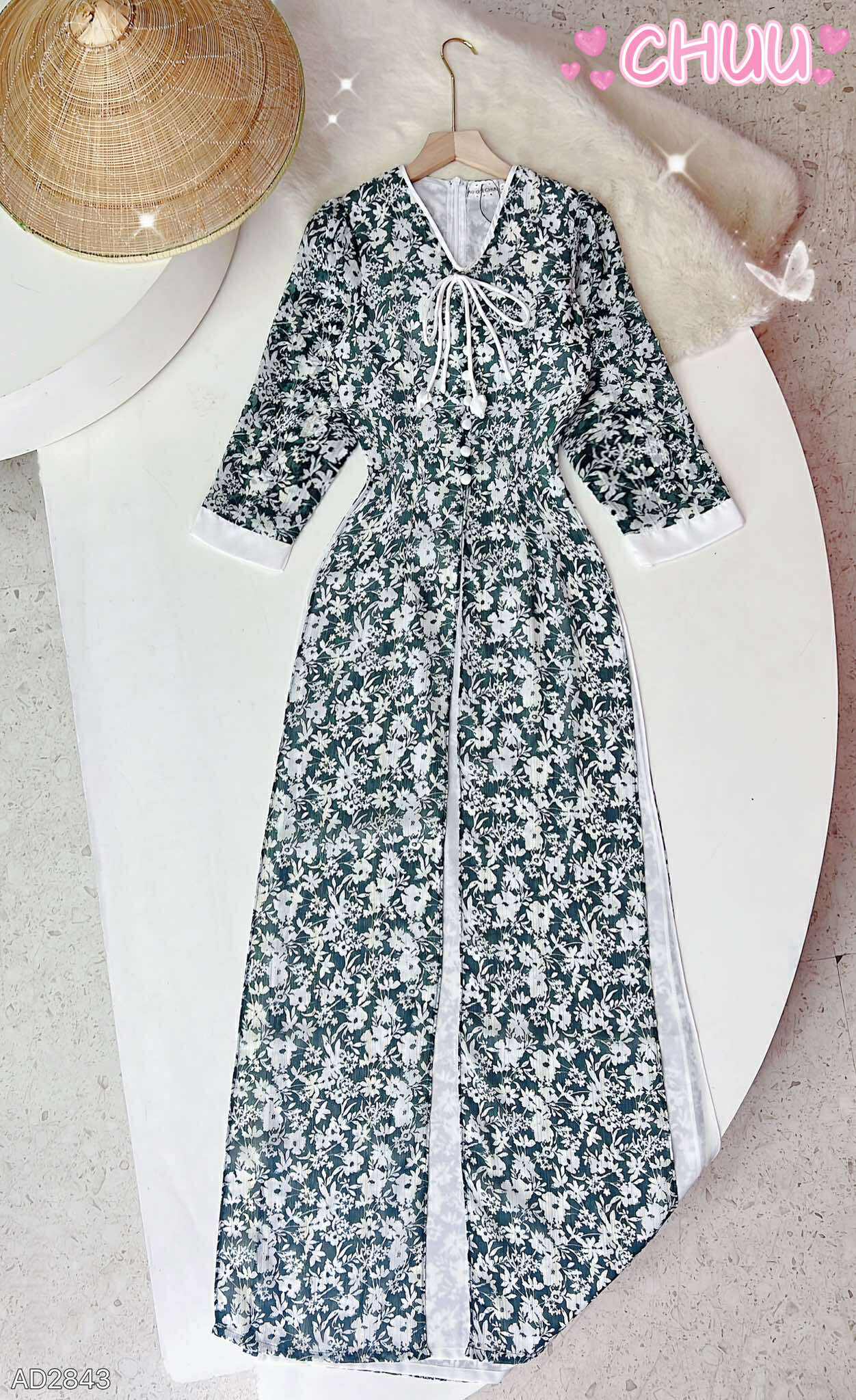 Áo Dài 4T Tơ Vàng Lá Ngọc+PK AD2843 (áo lẻ) KHUYẾN MÃI - ƯU ĐÃI