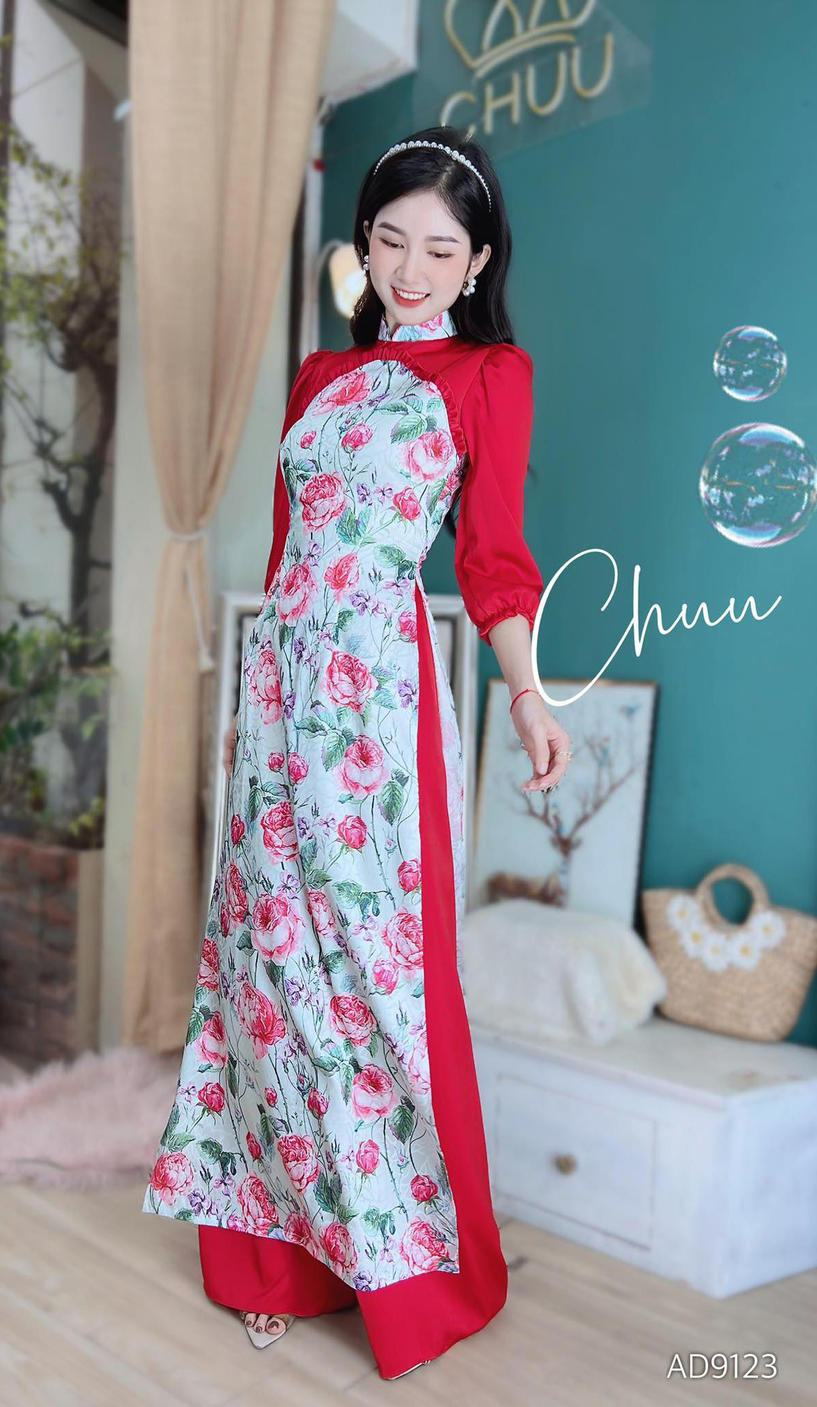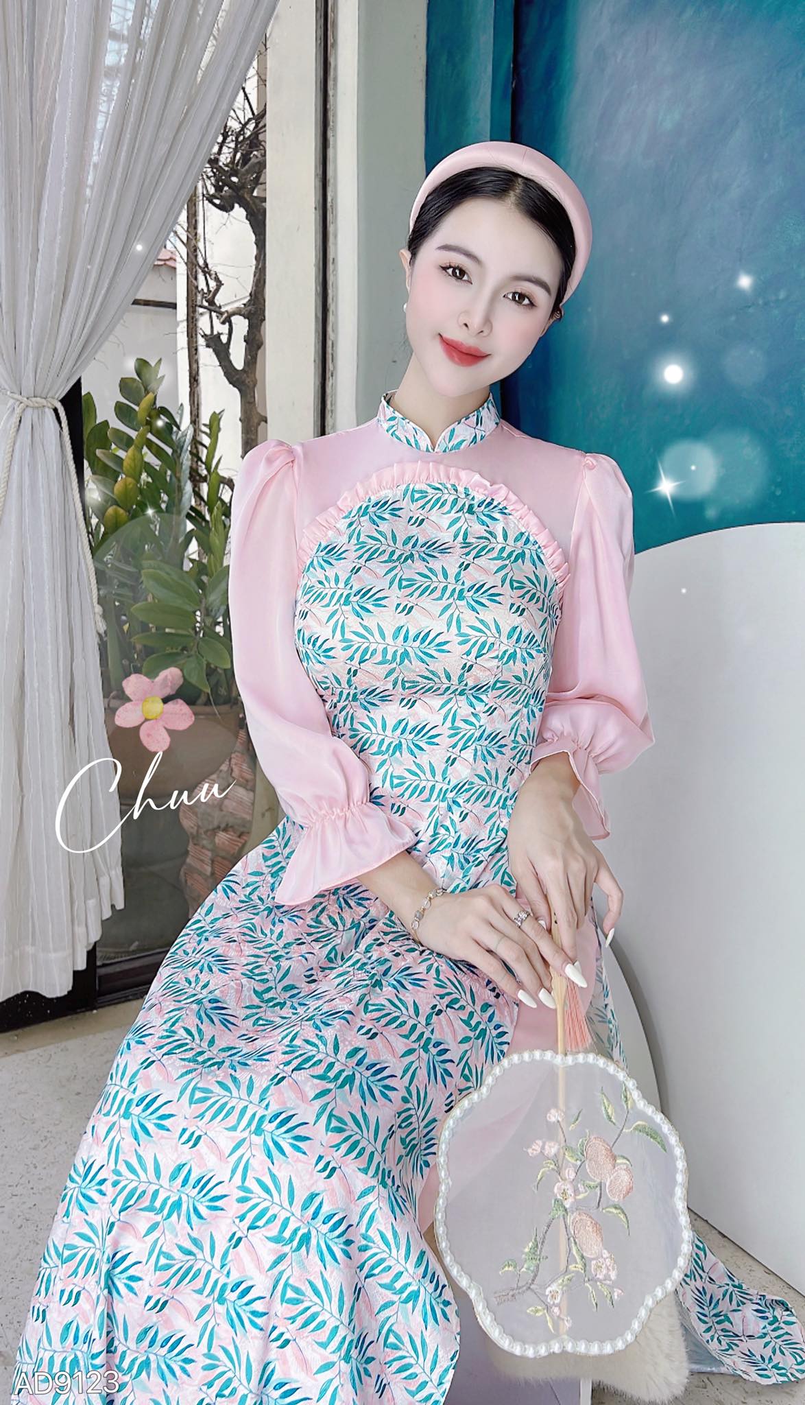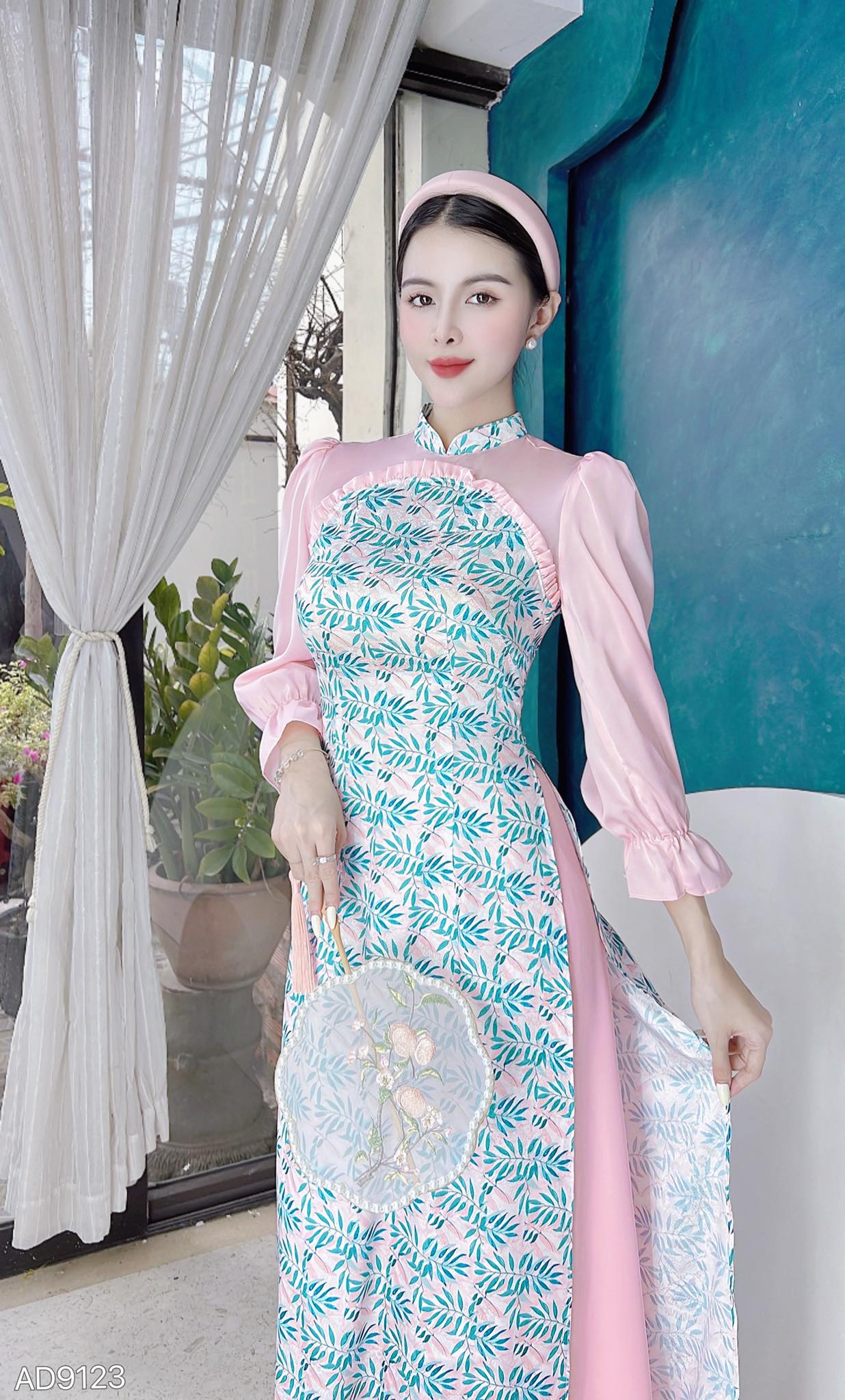 - Áo dài cách tân phần tay phồng bo chun vai tạo điểm nhấn thêm phần quyến rũ