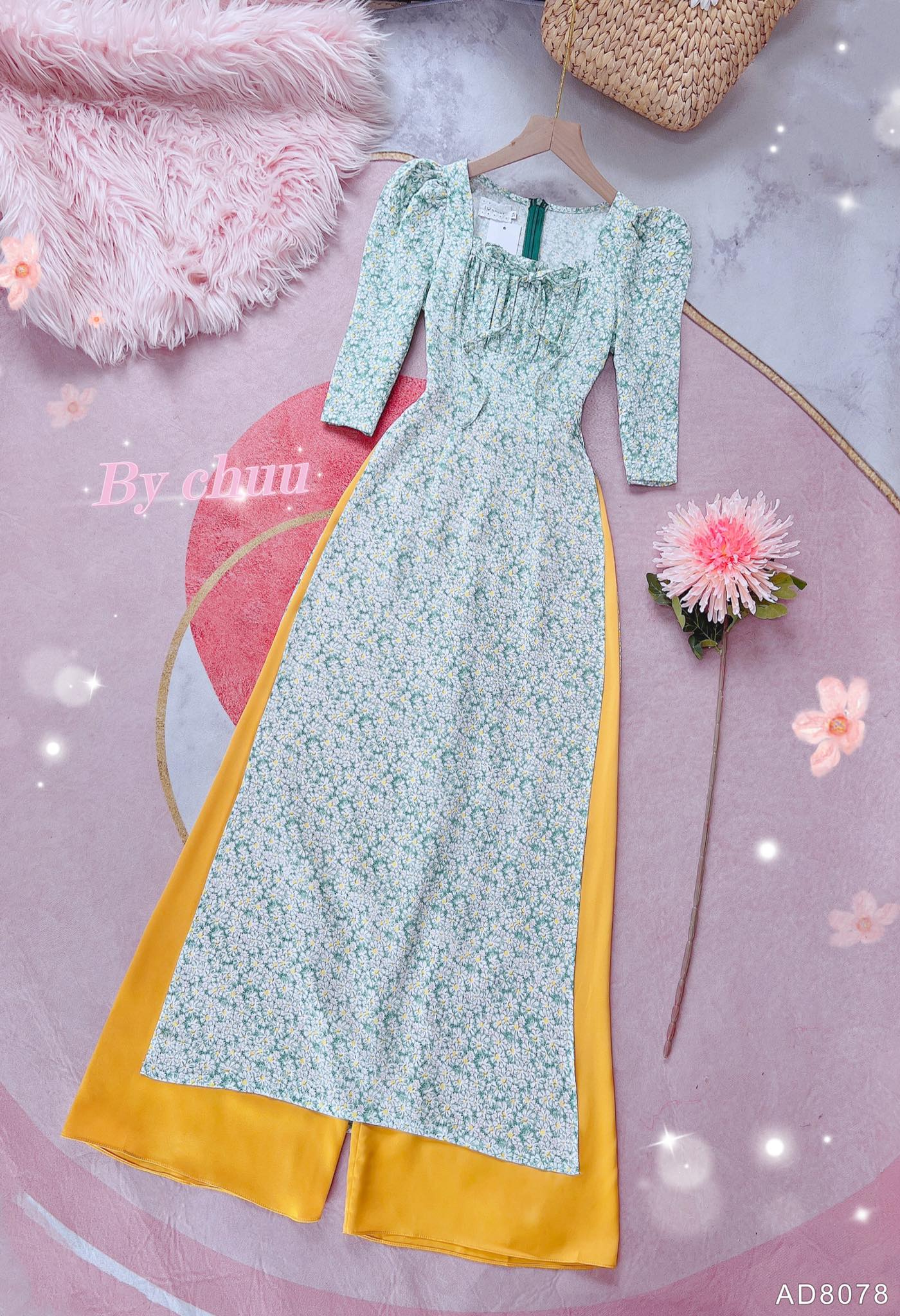 - Áo dài họa tiết hoa nhí chất liệu vải xốp vừa hiện đại vừa cổ điển