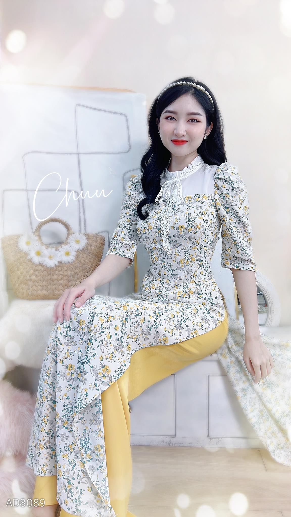 - Áo dài công sở vải họa tiết hoa nhí vừa hiện đại vừa cổ điển