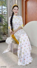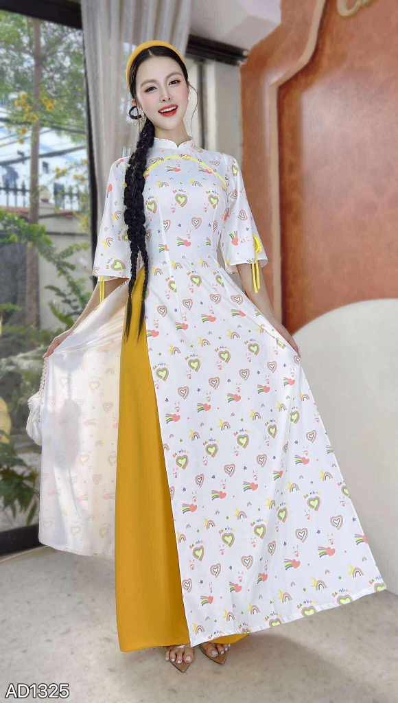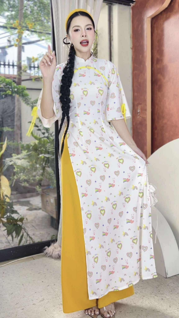 - Áo dài vải họa tiết hoa lá hiện đại vừa giữ vẻ đẹp truyền thống
