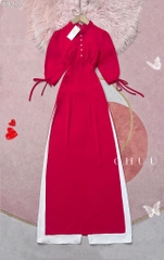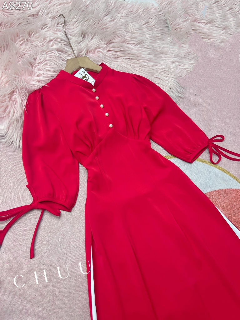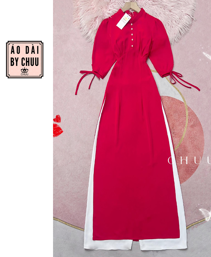 - Áo dài truyền thống kín đáo có thiết kế nhún li đính 5 hạt ngọc sang trọng