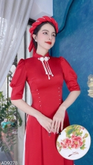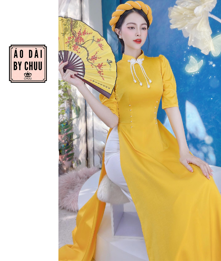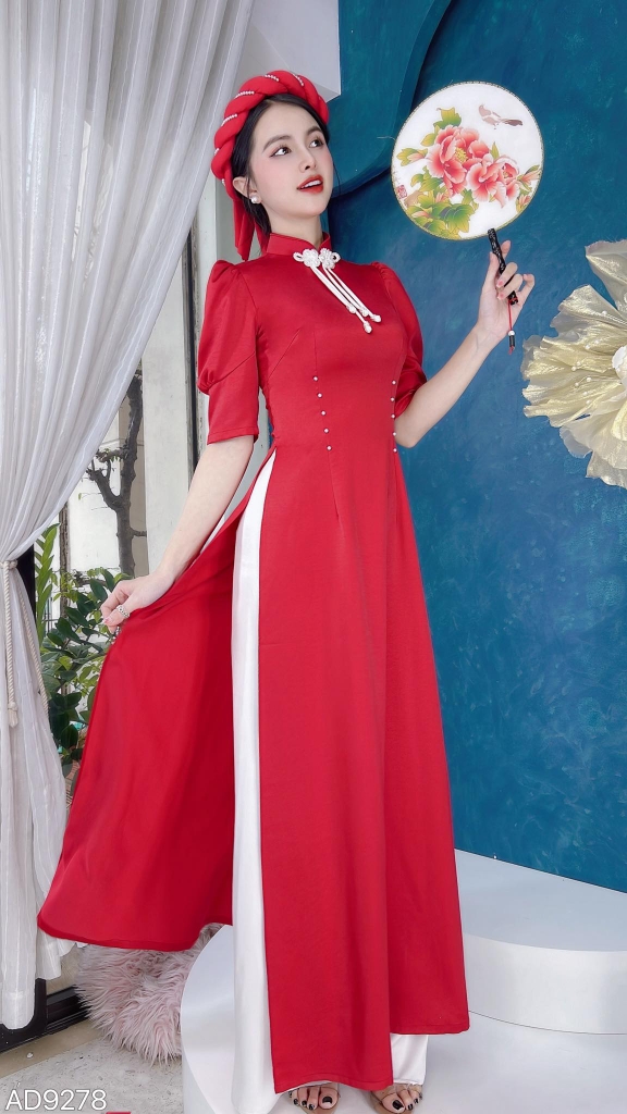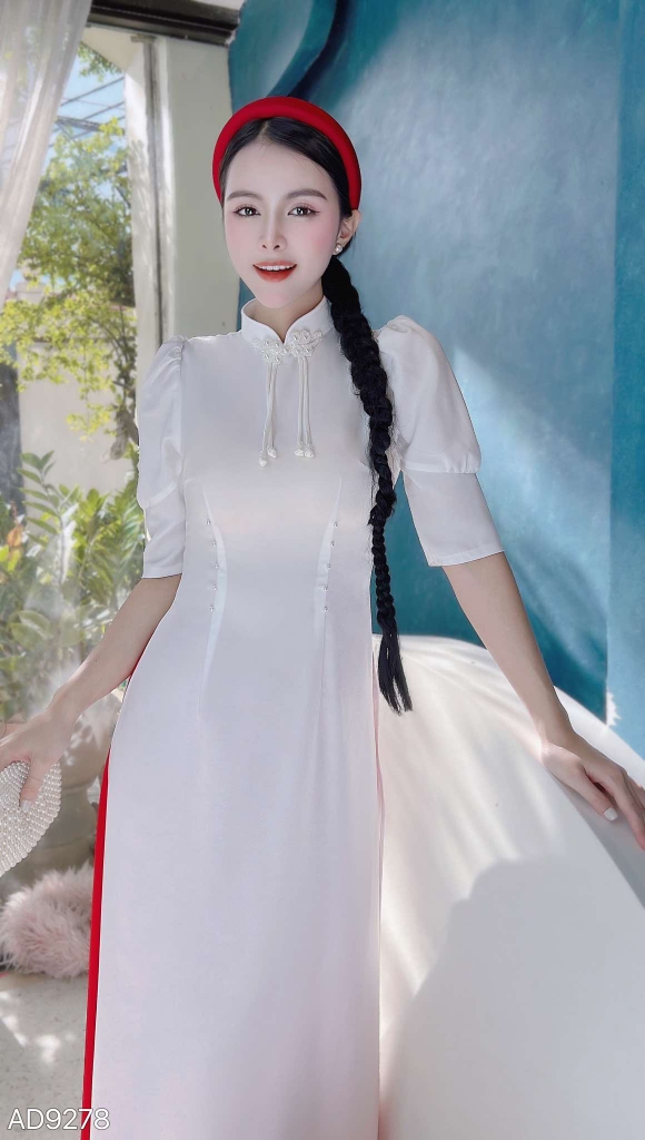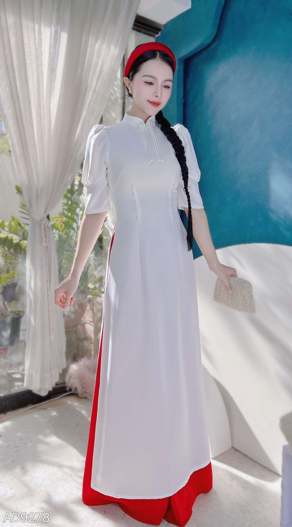 - Áo dài truyền thống có đường may chắc chắn và tinh tế, kiểu dây khoá kéo sau lưng., mang đến độ bền đẹp lâu dài cho sản phẩm.