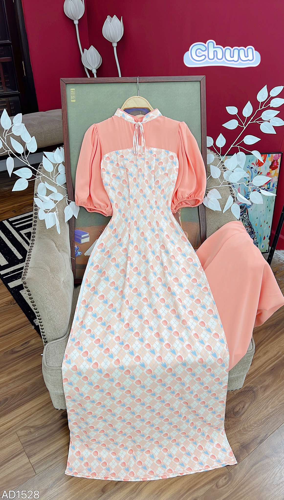 Áo Dài Ô Vuông Bub AD1528 (áo lẻ) KHUYẾN MÃI - ƯU ĐÃI