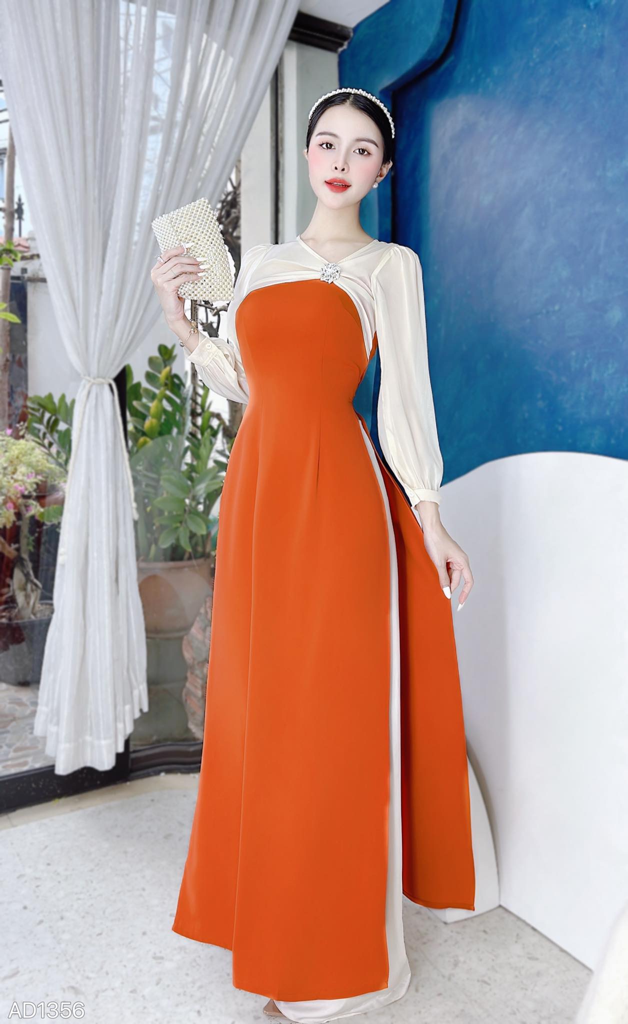- Áo dài có thiết kế tạo điểm nhấn tay tơ nơ bạch tuyết cực xinh