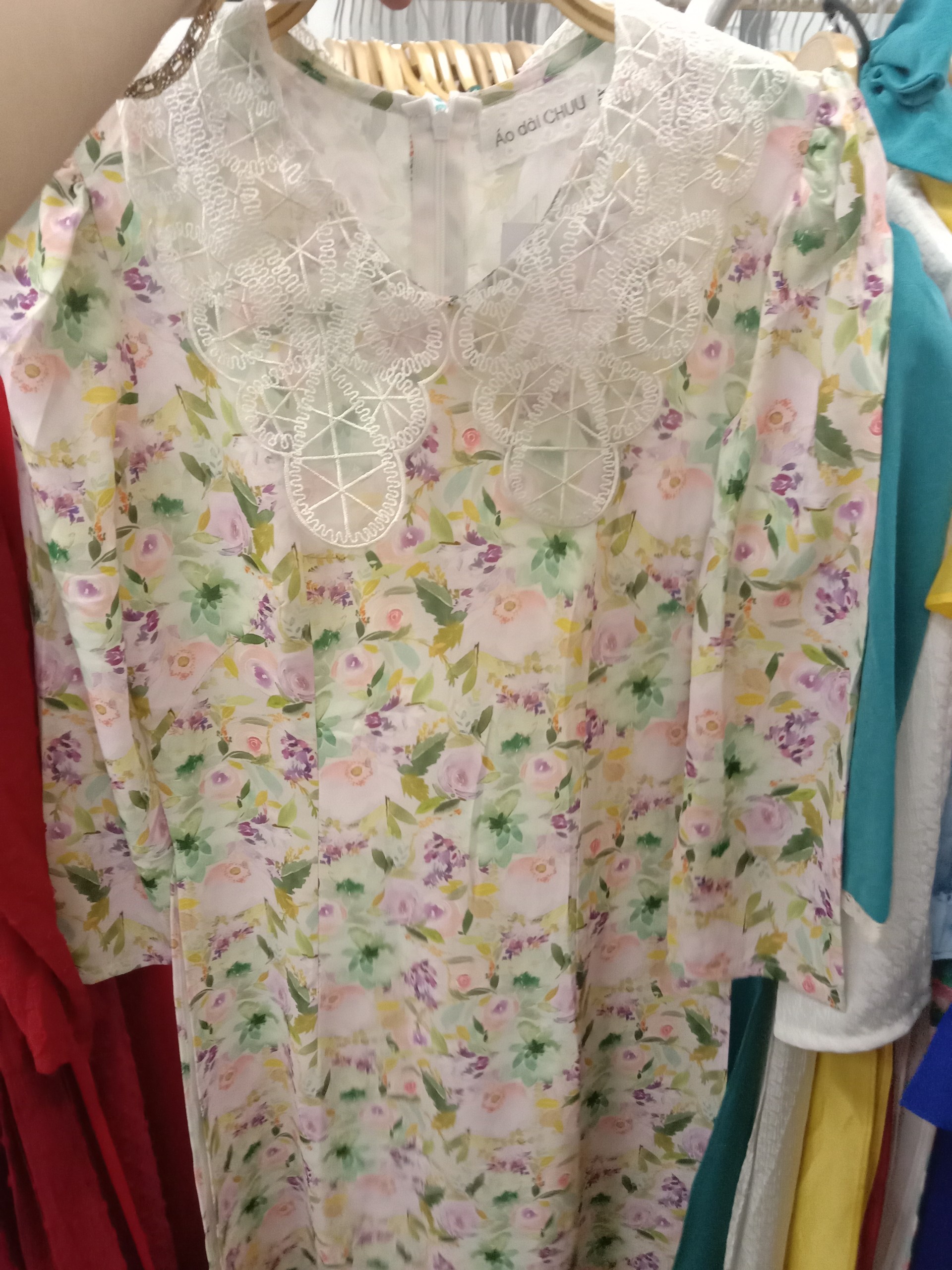 - Áo dài cách tân hoa nhí có đường may chắc chắn và tinh tế, kiểu dây khoá kéo sau lưng, mang đến độ bền đẹp lâu dài cho sản phẩm.