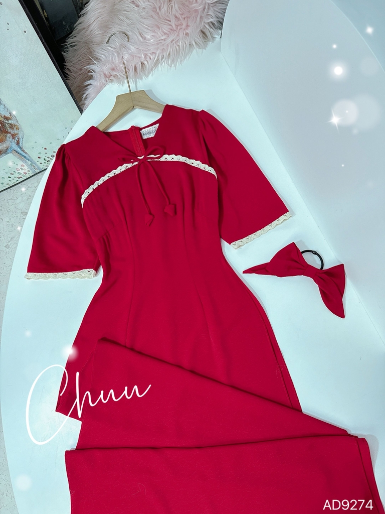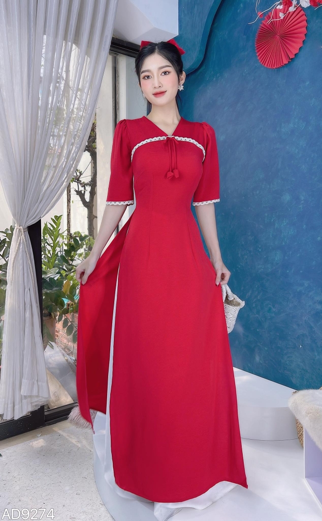 - Áo dài công sở cổ truyền thống viền trắng đính nơ cực xinh