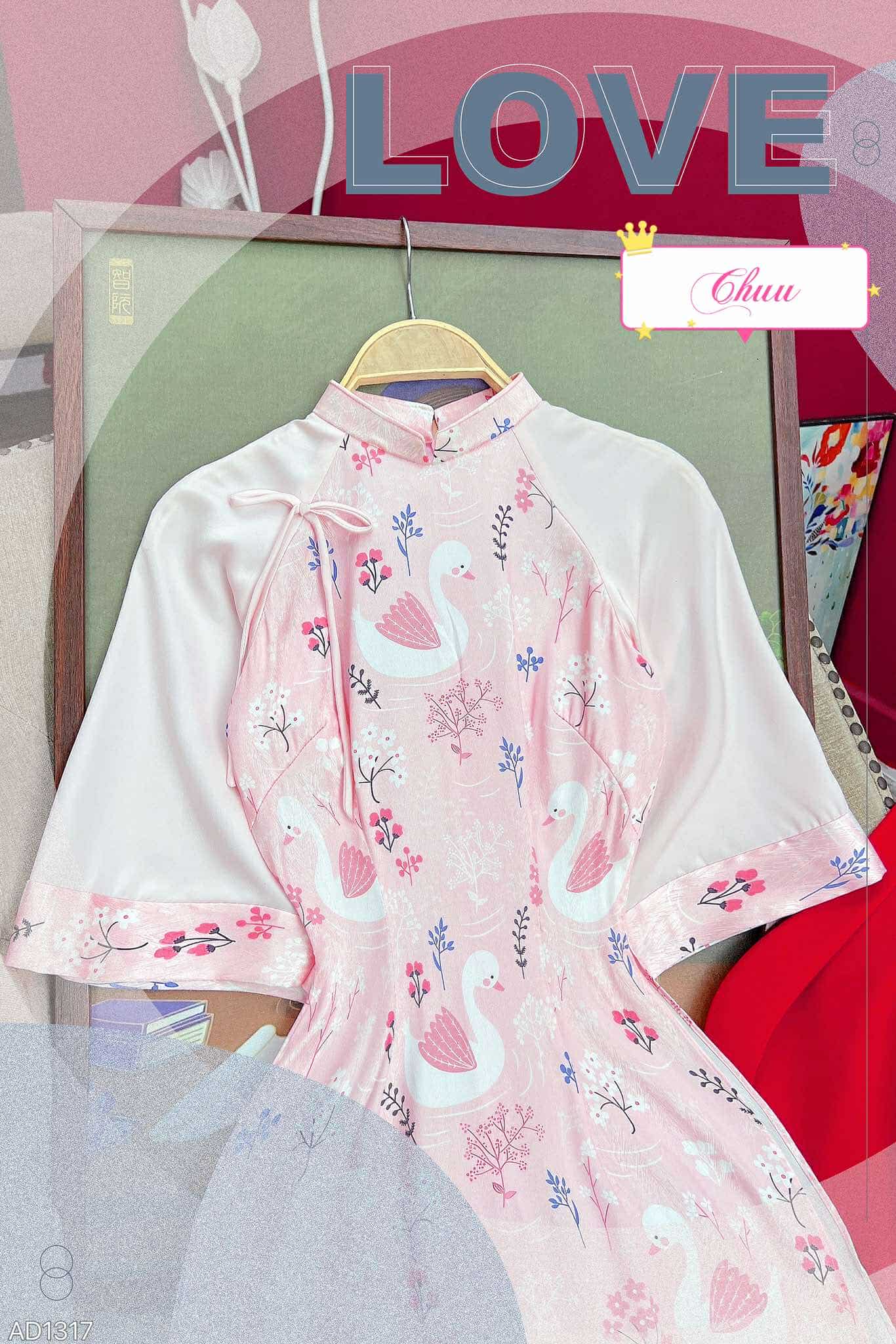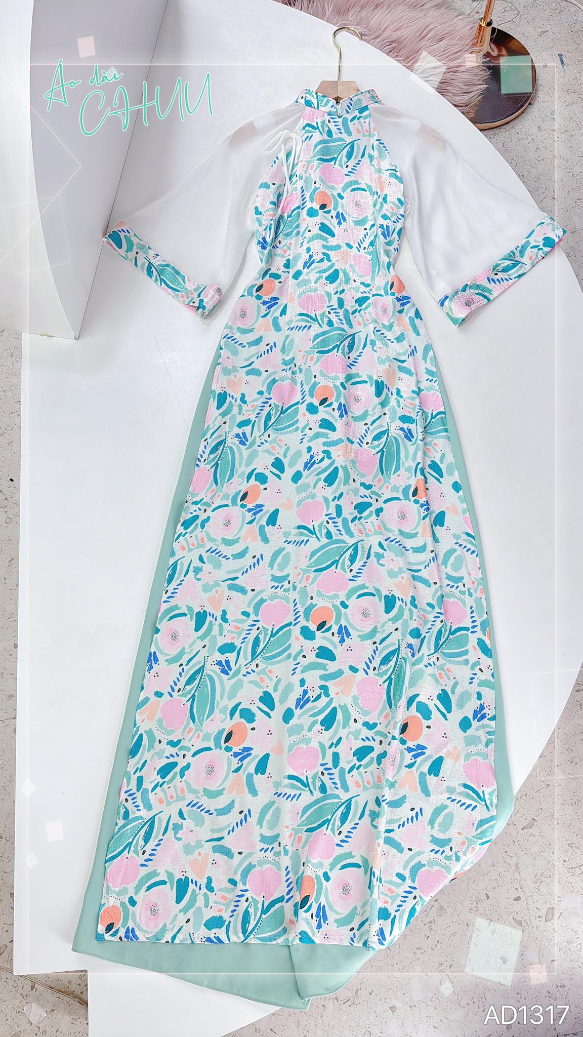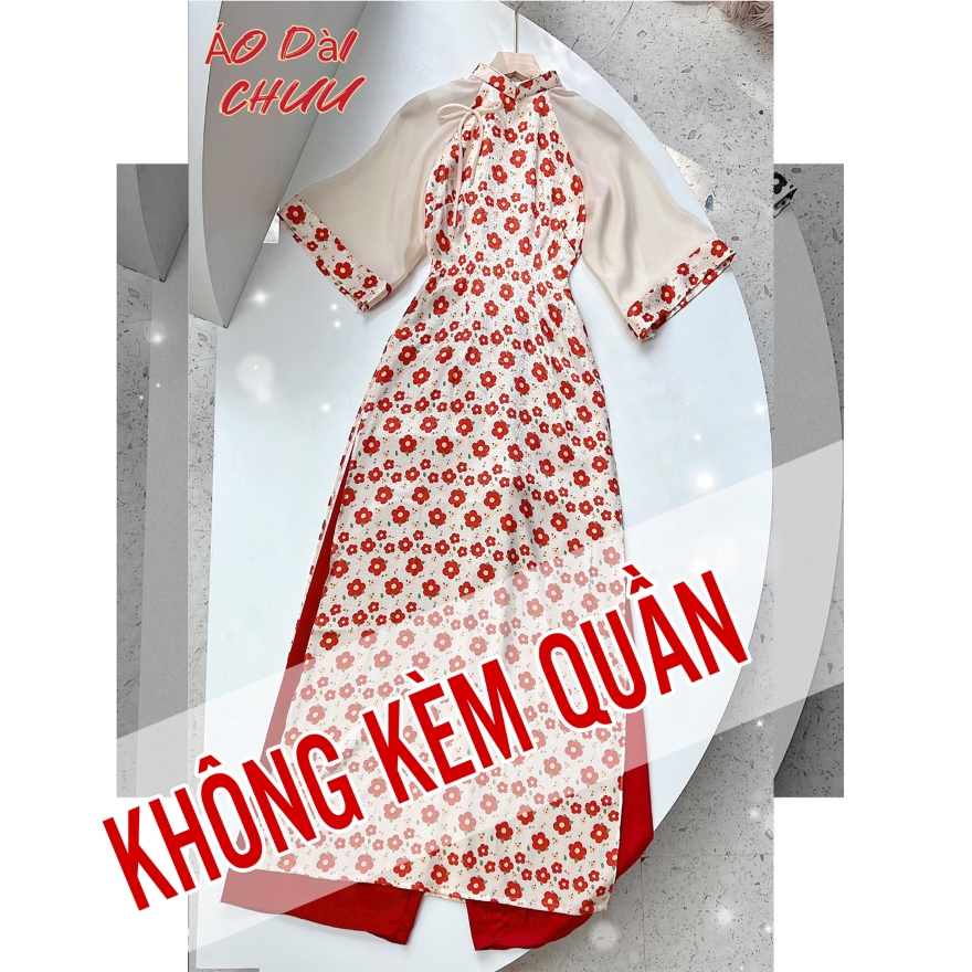 - Áo dài nữ thiết kế tạo điểm nhấn phần tay loe viền hoa cực xinh