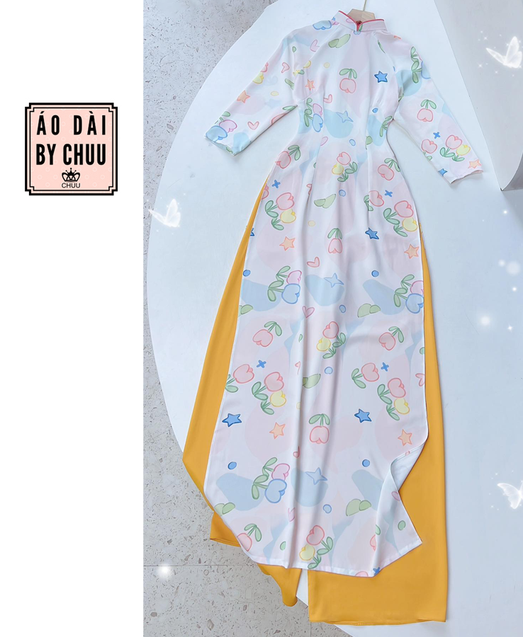 - Áo dài lụa có đường may chắc chắn và tinh tế, kiểu dây khoá kéo sau lưng, mang đến độ bền đẹp lâu dài cho sản phẩm.