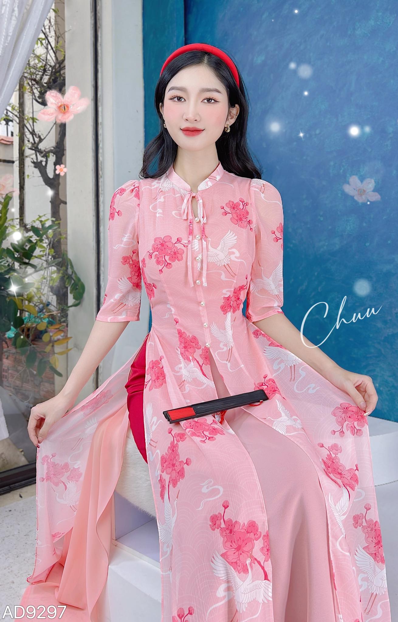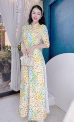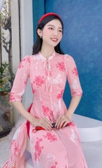 - Áo dài được thiết kế tạo điểm nhấn kiểu tứ thân liên hoa cực xinh