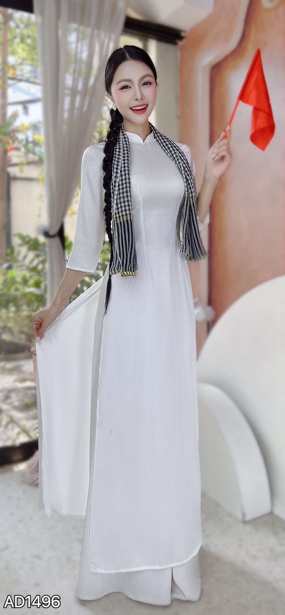 Áo Dài Vân Cá Raplan Tay A AD1496 (áo lẻ) KHUYẾN MÃI - ƯU ĐÃI