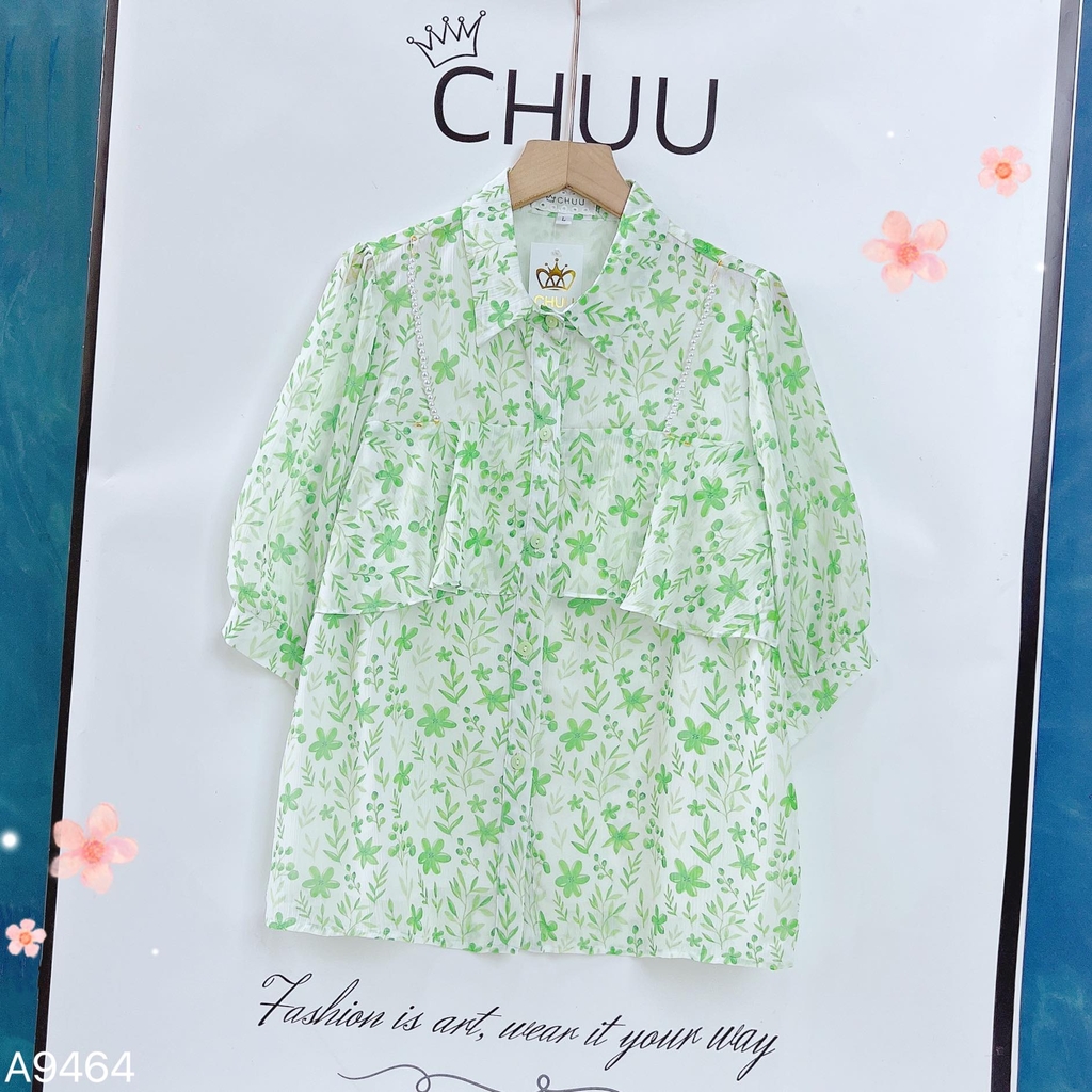 - Áo sơ mi cổ đức, vạt bèo kèm dây ngọc (có thể tháo rời)