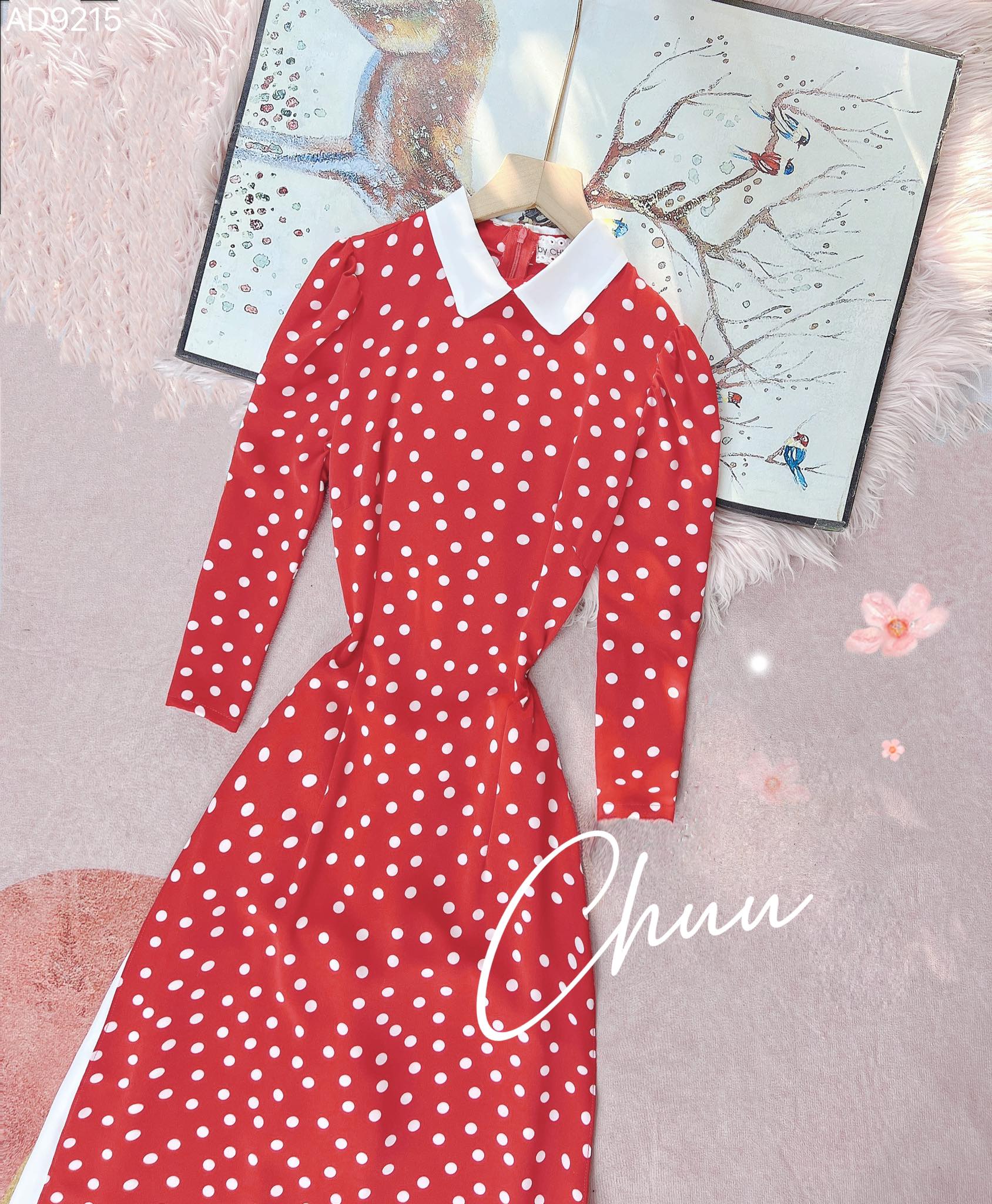 - Tay áo dài hơi phồng nhẹ giúp che khuyết điểm bắp tay cho chị em.