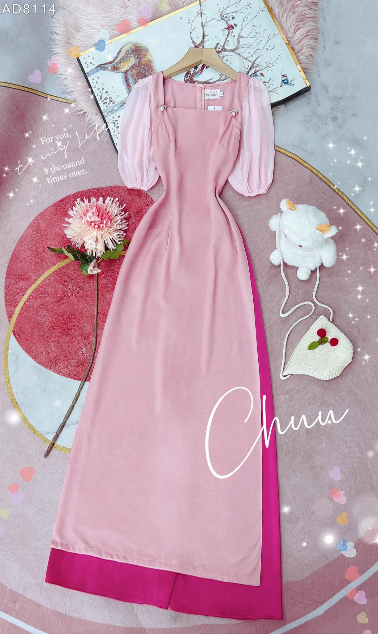 - Vải lụa ướt lên form chuẩn, có độ bóng thướt tha, tay bồng vải tơ oganza