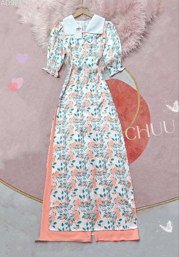 - Áo dài cổ trắng tạo điểm nhấn thêm phần xinh xắn