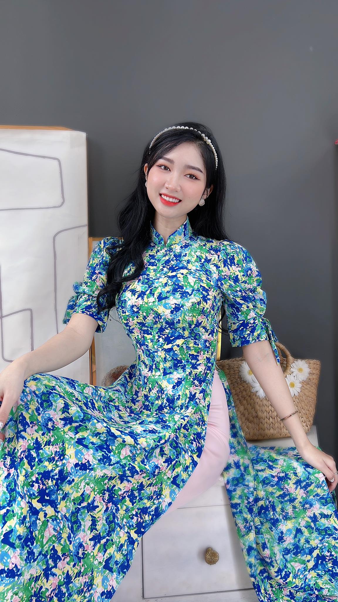 - Áo dài công sở vải họa tiết hoa vừa hiện đại vừa cổ điển