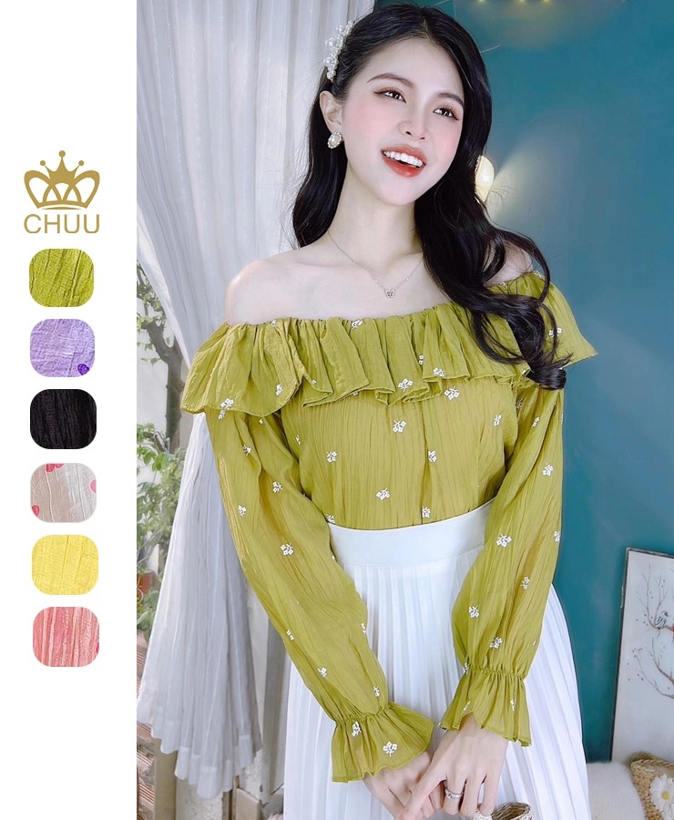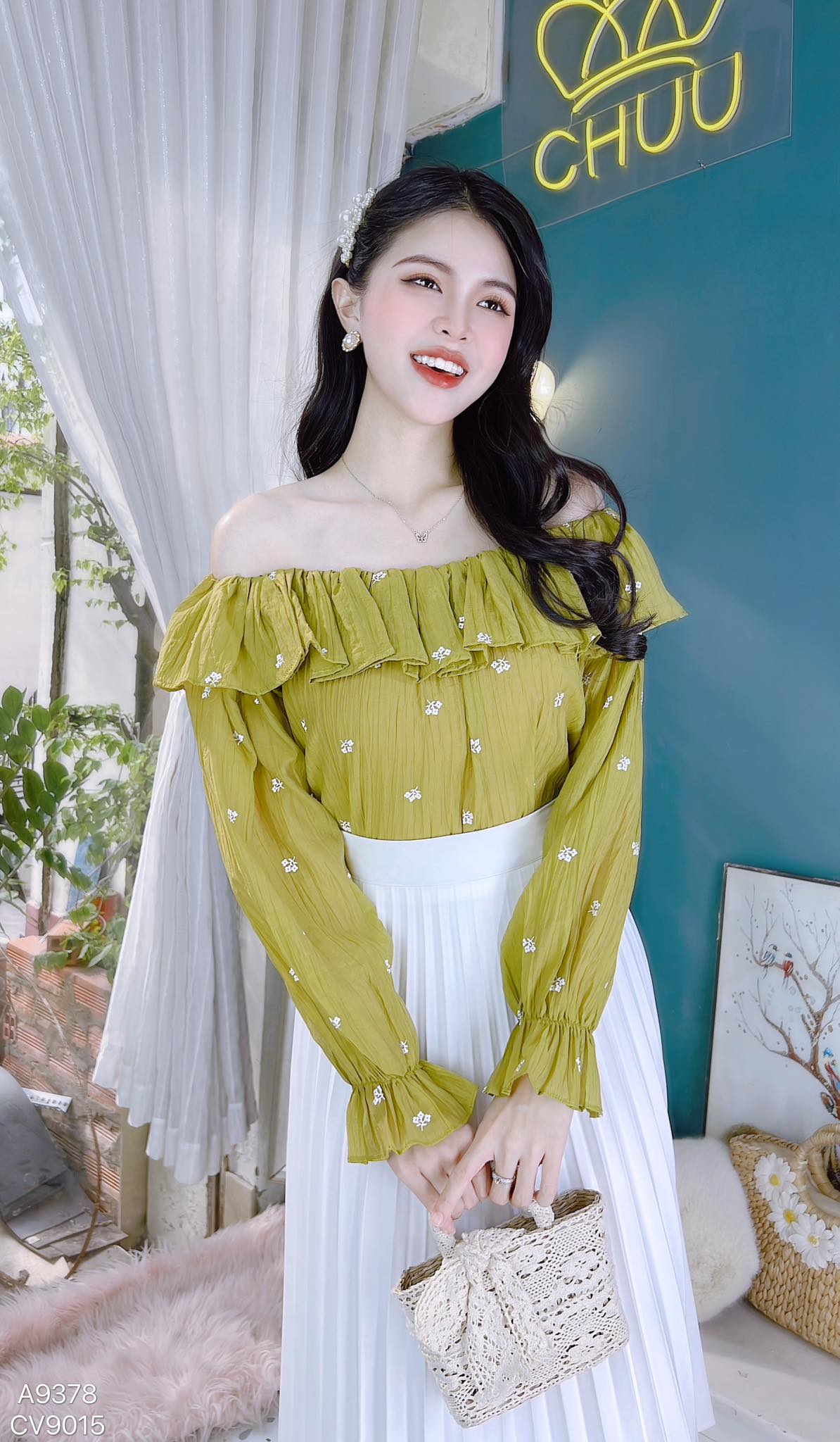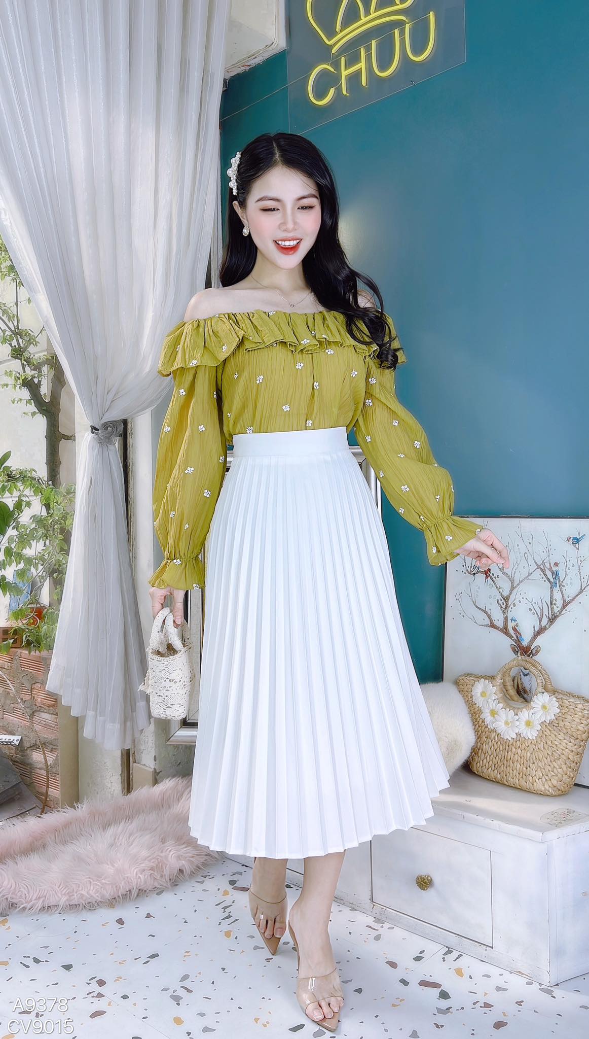 - Áo sơ mi tay dài phồng bồng bềnh giúp che khuyết điểm bắp tay cho chị em