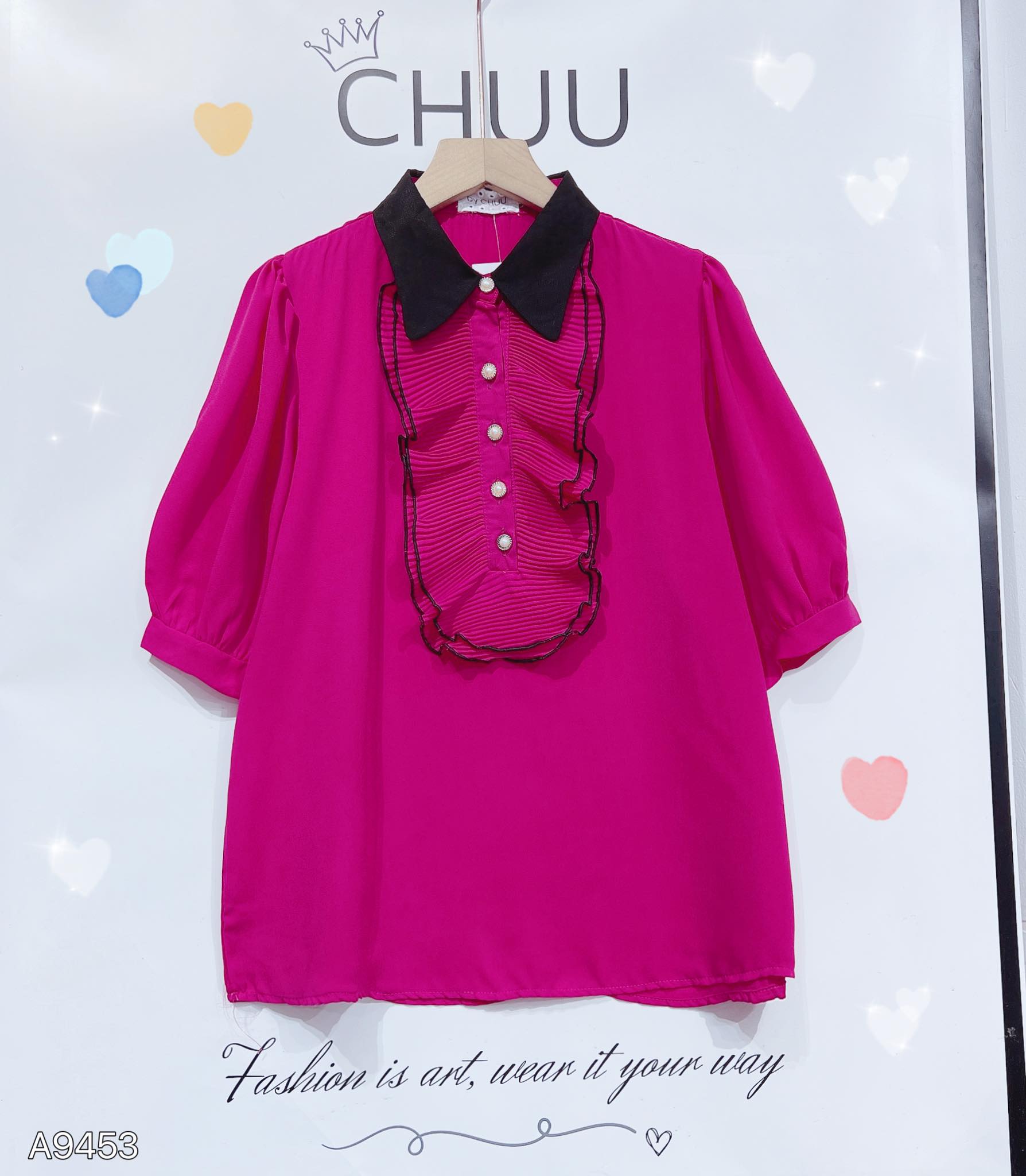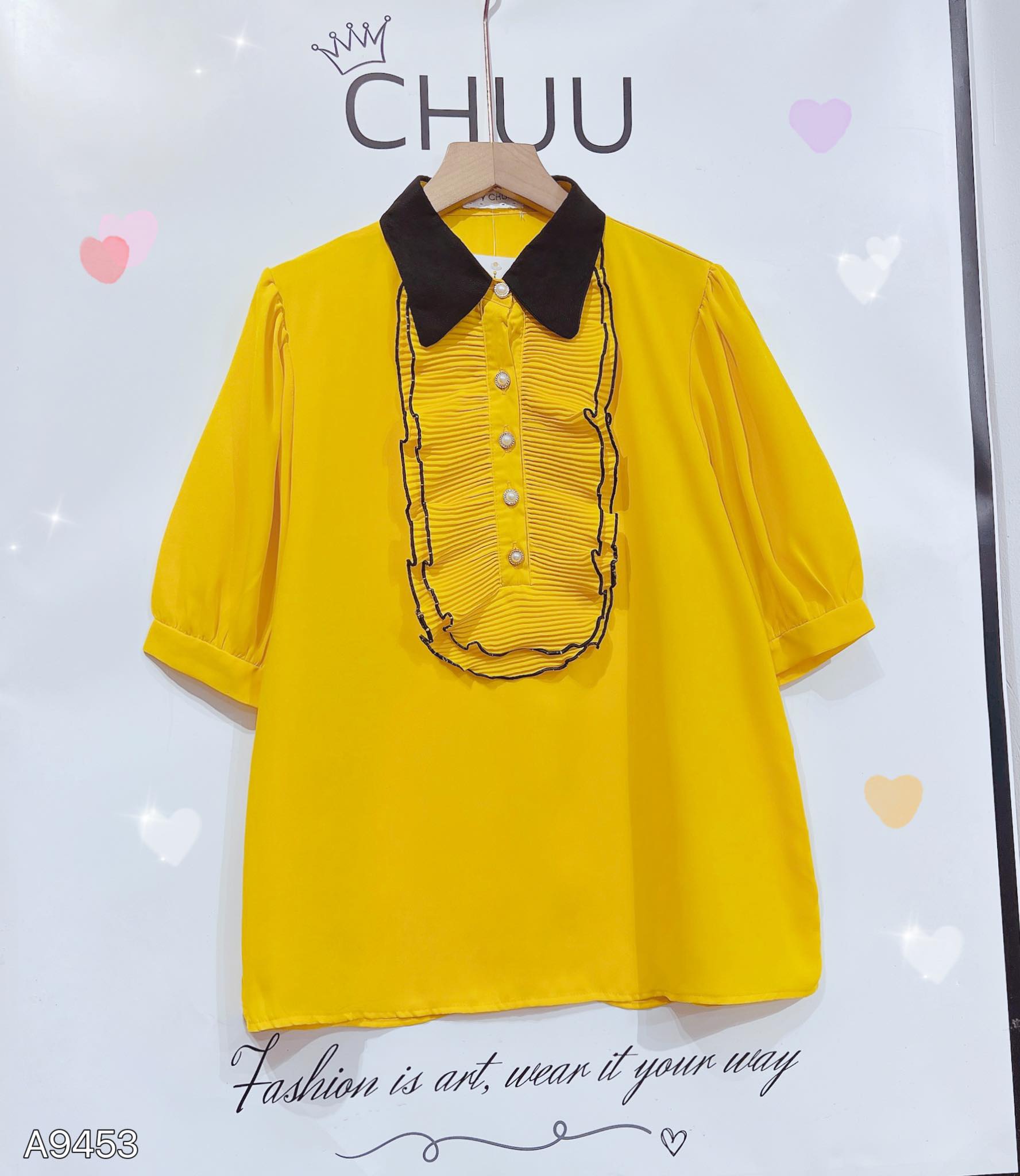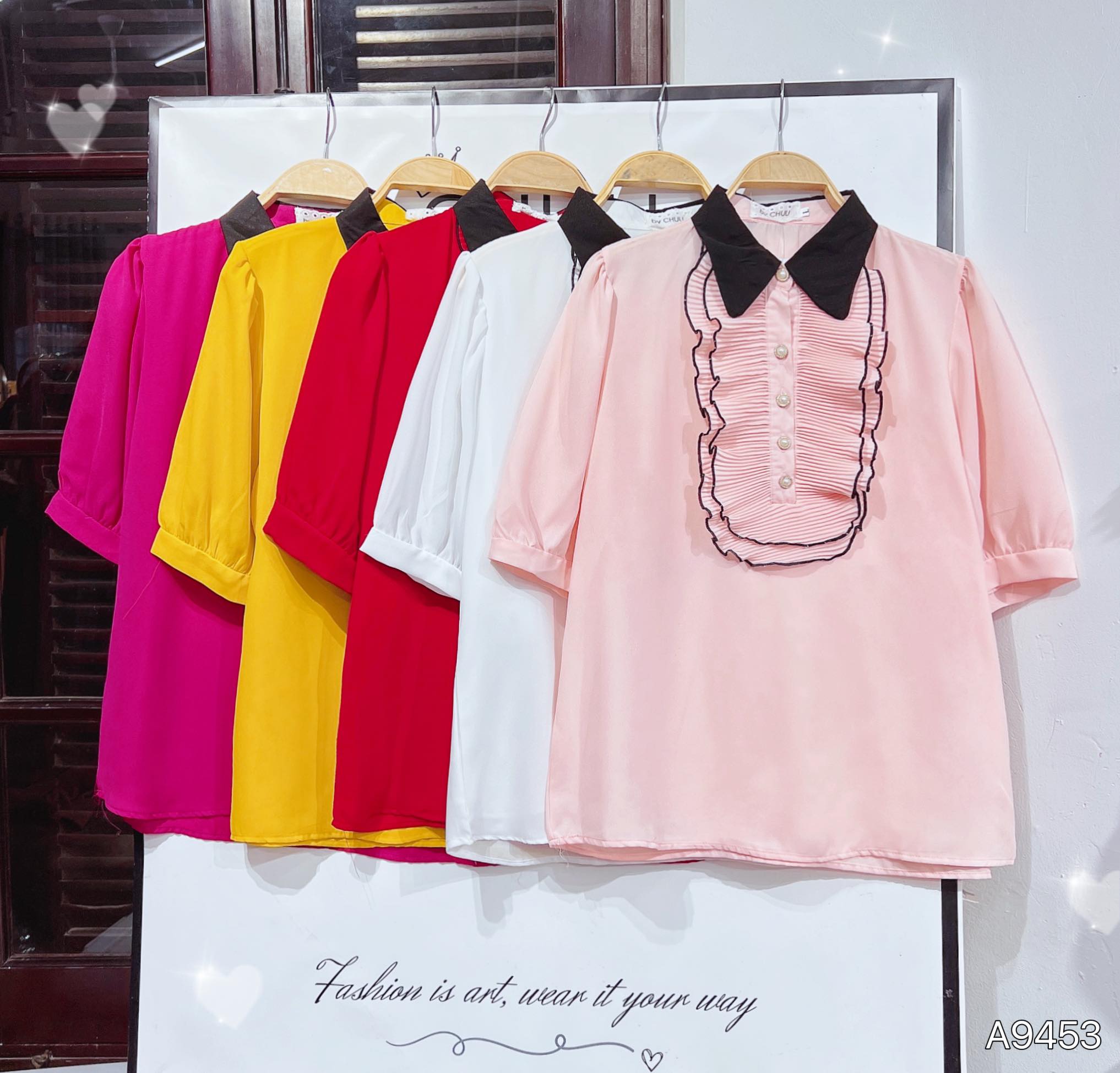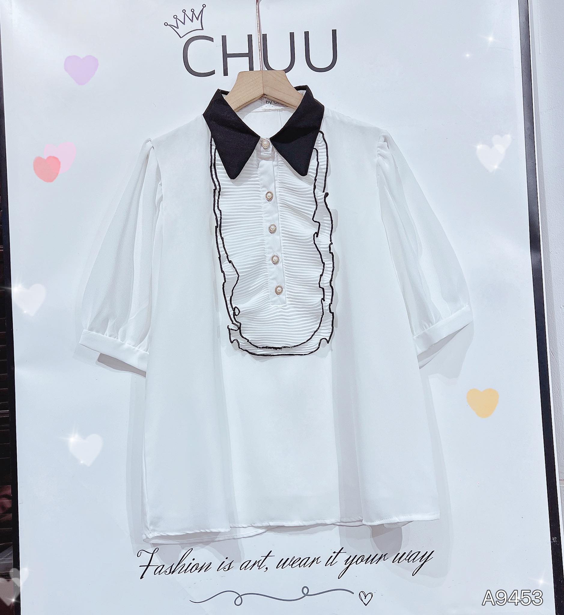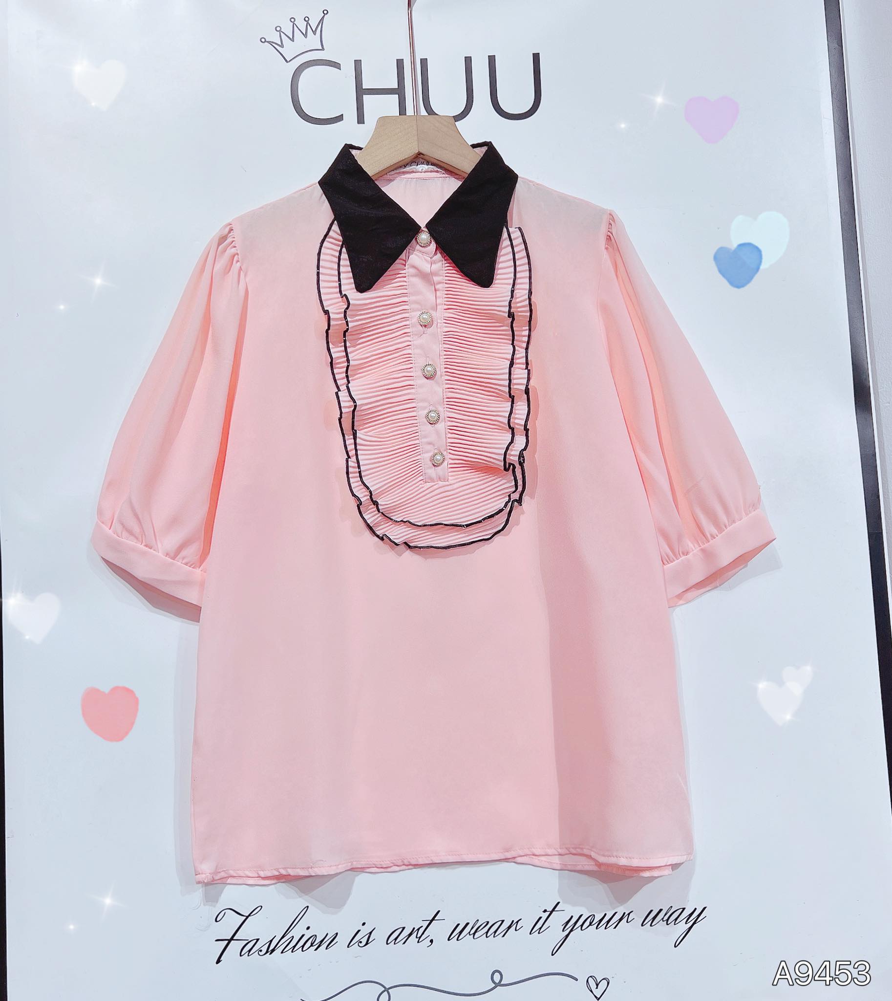 - Áo sơ mi tay ngắn phồng bồng bềnh giúp che khuyết điểm bắp tay cho chị em