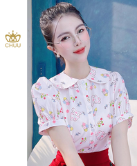 - Áo hoa nhí tay phồng phù hợp cho áo đi làm, đi dạy, đi học