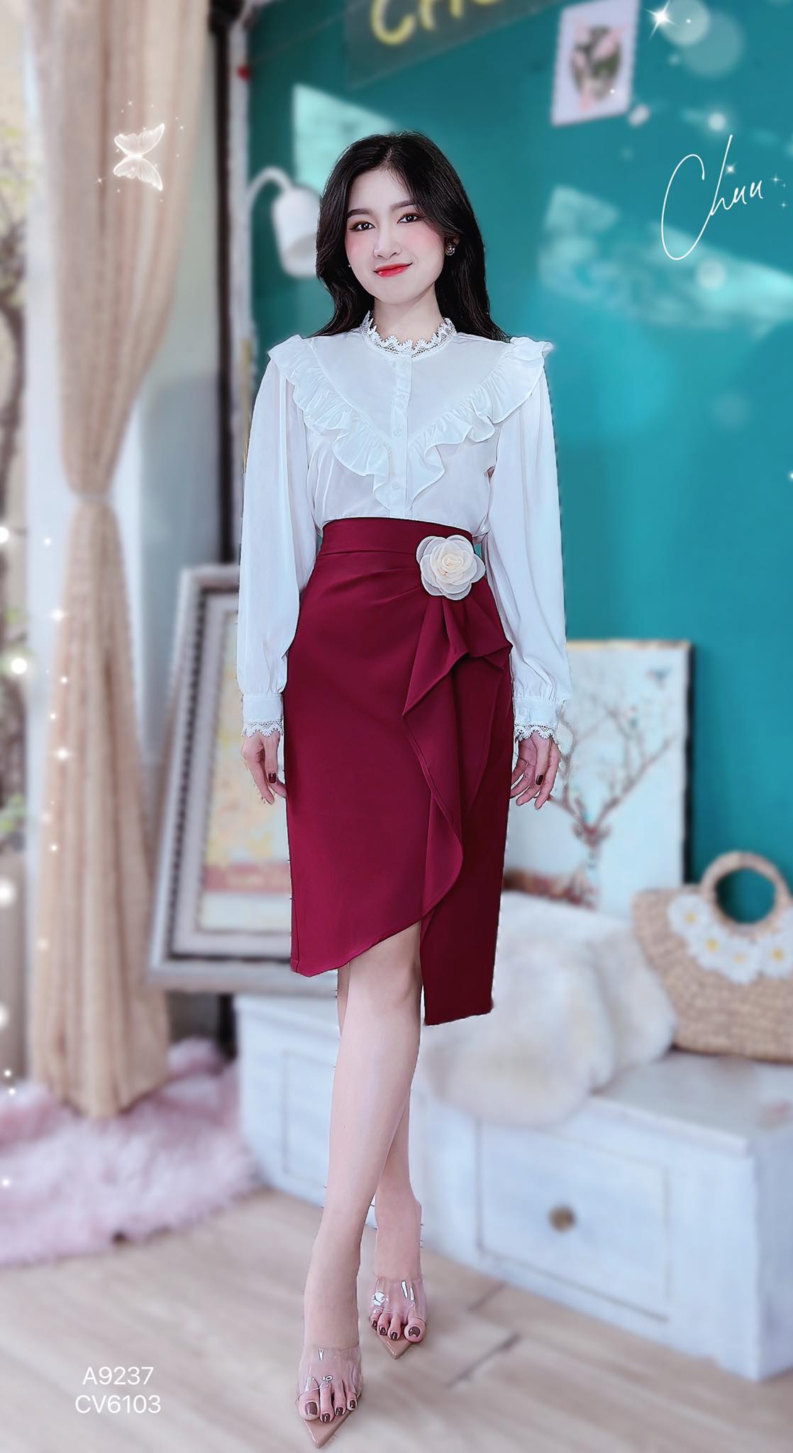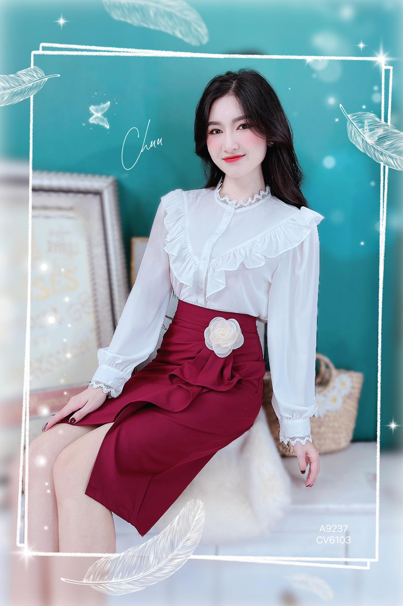- Mỗi áo sơ mi có viền bèo thân trước tạo điểm nhấn cho chiếc áo thêm xinh xắn