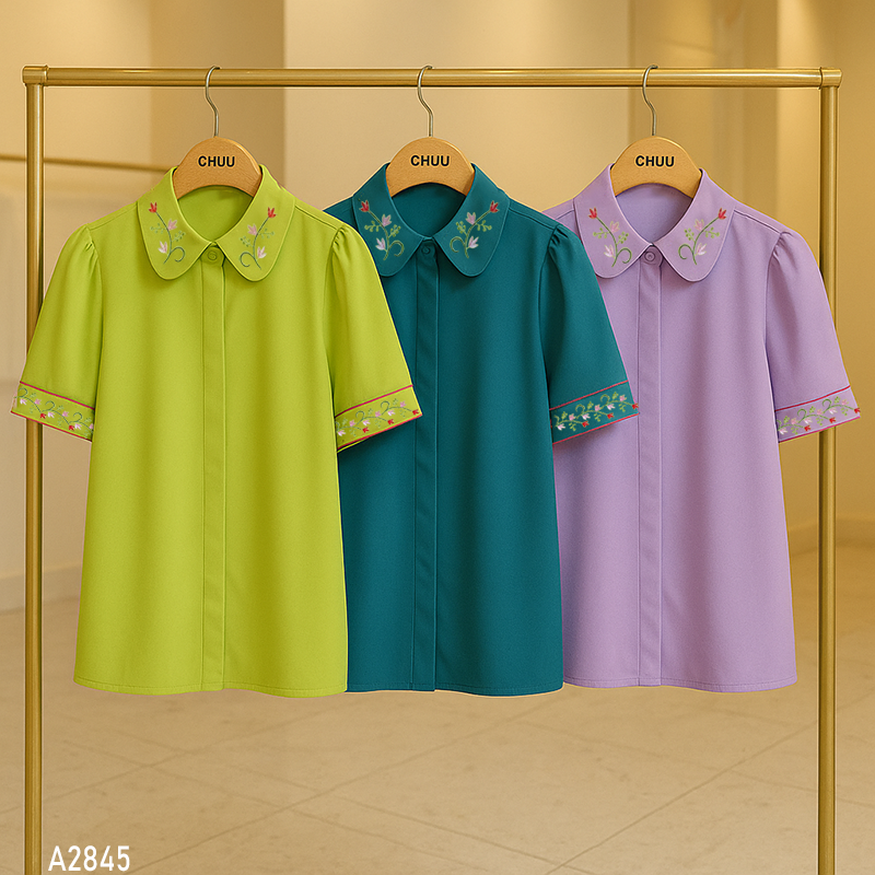 Áo Sơ Mi Thêu Hoa Lá Màu A2845