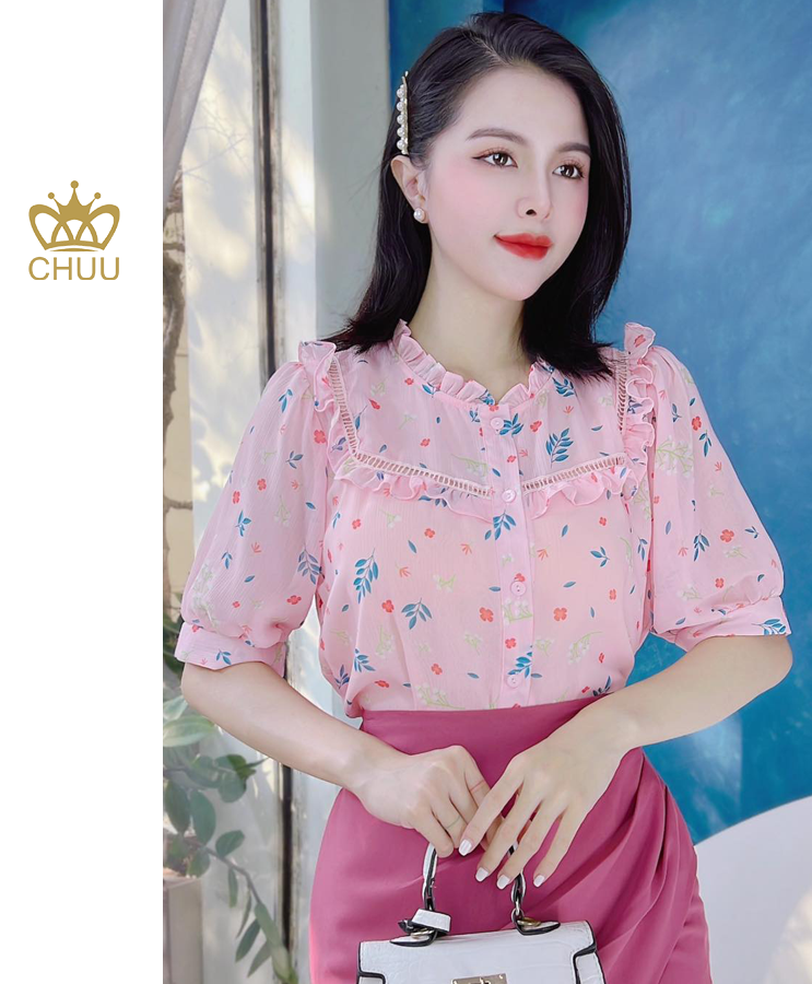 - Áo được thiết kế kiểu đô vuông bèo xoắn tạo điểm nhấn cực xinh