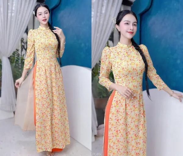 2.4 Áo Dài Họa Tiết TT Tay Bồng AD1379