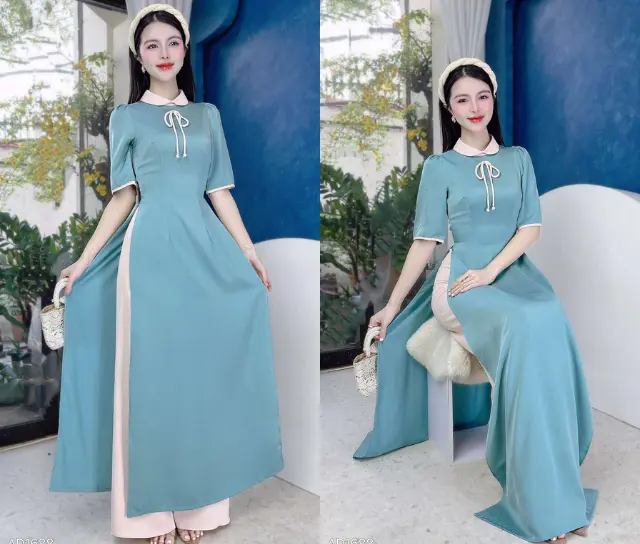 Áo dài pastel và quần cùng tông màu: Những gam màu pastel như hồng nhạt, xanh nhạt khi phối cùng quần có tông đậm hơn sẽ tạo nên sự hài hòa, nhẹ nhàng và nữ tính, giúp bạn tỏa sáng mà vẫn giữ được sự thanh thoát.