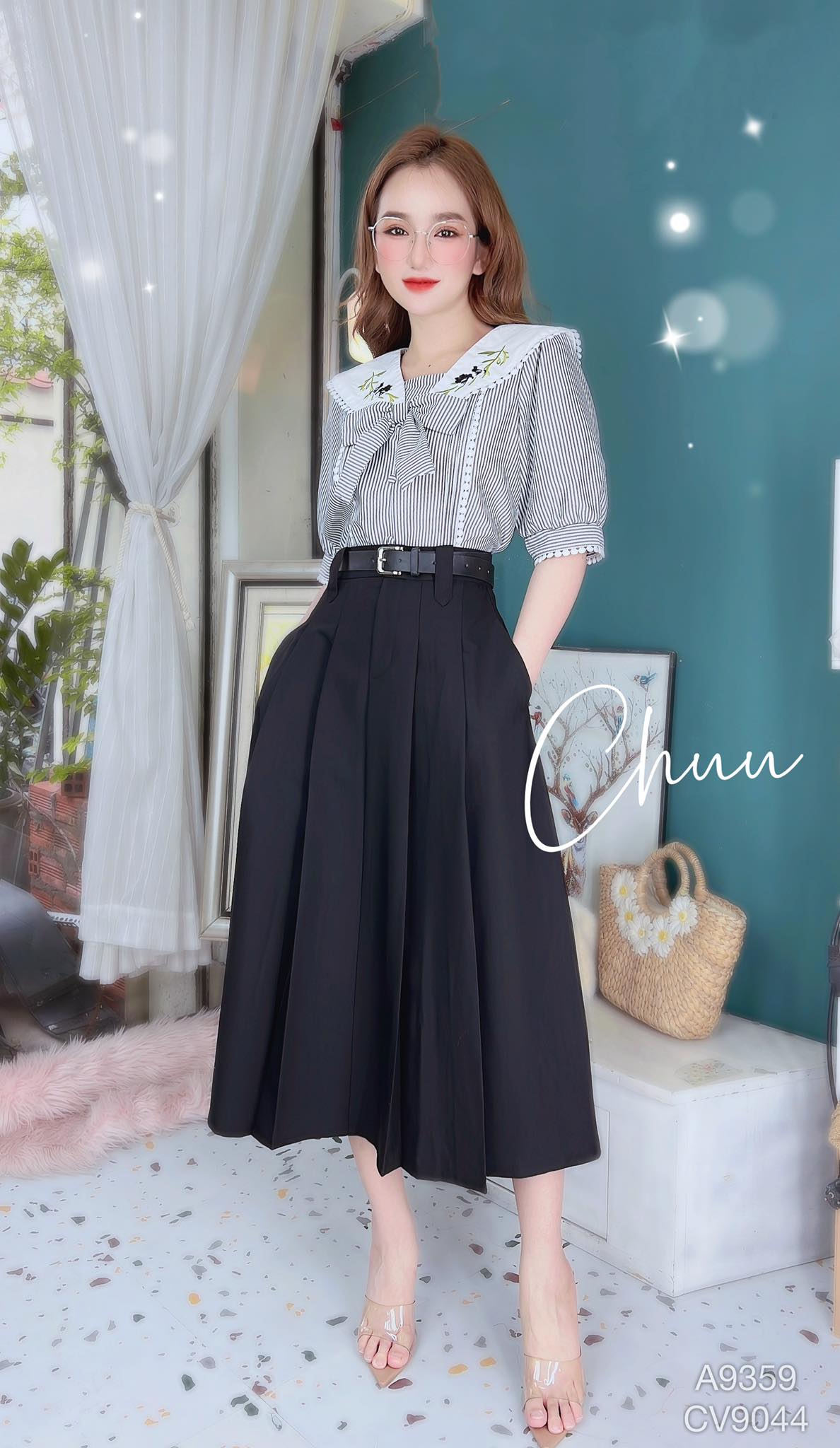 - Váy dáng chữ A xếp ly xòe dễ mặc