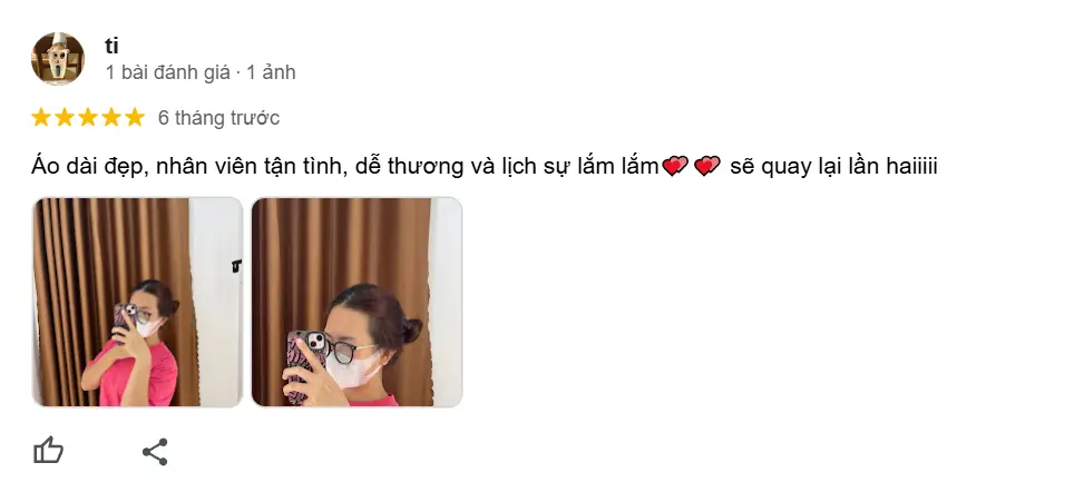 Những phản hồi tích cực từ khách hàng chính là minh chứng rõ ràng nhất về chất lượng và uy tín của áo dài CHUU. Nếu nàng đang tìm kiếm một thương hiệu áo dài chất lượng, kiểu dáng đa dạng và dịch vụ chăm sóc khách hàng tốt, áo dài CHUU chắc chắn sẽ là điểm đến lý tưởng dành cho bạn. Đừng bỏ lỡ cơ hội trải nghiệm và sở hữu những bộ áo dài đẹp nhất tại CHUU!