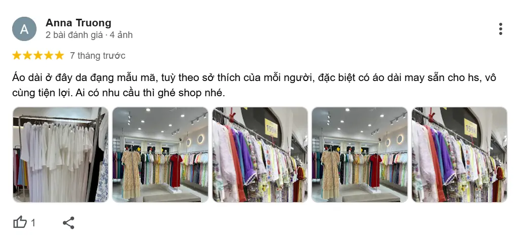 Ngoài chất lượng sản phẩm, không gian mua sắm tại CHUU cũng được khách hàng đánh giá cao. Khách hàng chia sẻ rằng cửa hàng luôn sạch sẽ, được thiết kế rộng rãi, thoáng mát với hệ thống ánh sáng hài hòa, làm nổi bật các mẫu áo dài và giúp trải nghiệm mua sắm trở nên dễ chịu, thư giãn hơn. Không gian đẹp cũng chính là lý do nhiều khách hàng lựa chọn CHUU làm nơi thường xuyên ghé thăm khi có nhu cầu mua sắm áo dài.