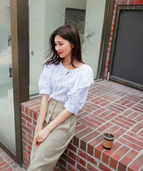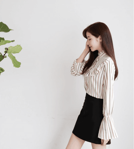 Đừng tưởng những đường kẻ sọc cơ bản không hợp với những cách điệu điệu đà của áo. Áo kẻ vẫn có rất nhiều thiết kế cách điệu như trễ vai, xếp bèo, tay loe... đa phần đều là những đường kẻ thanh mảnh chứ không hề to bản như sơmi đứng dáng.