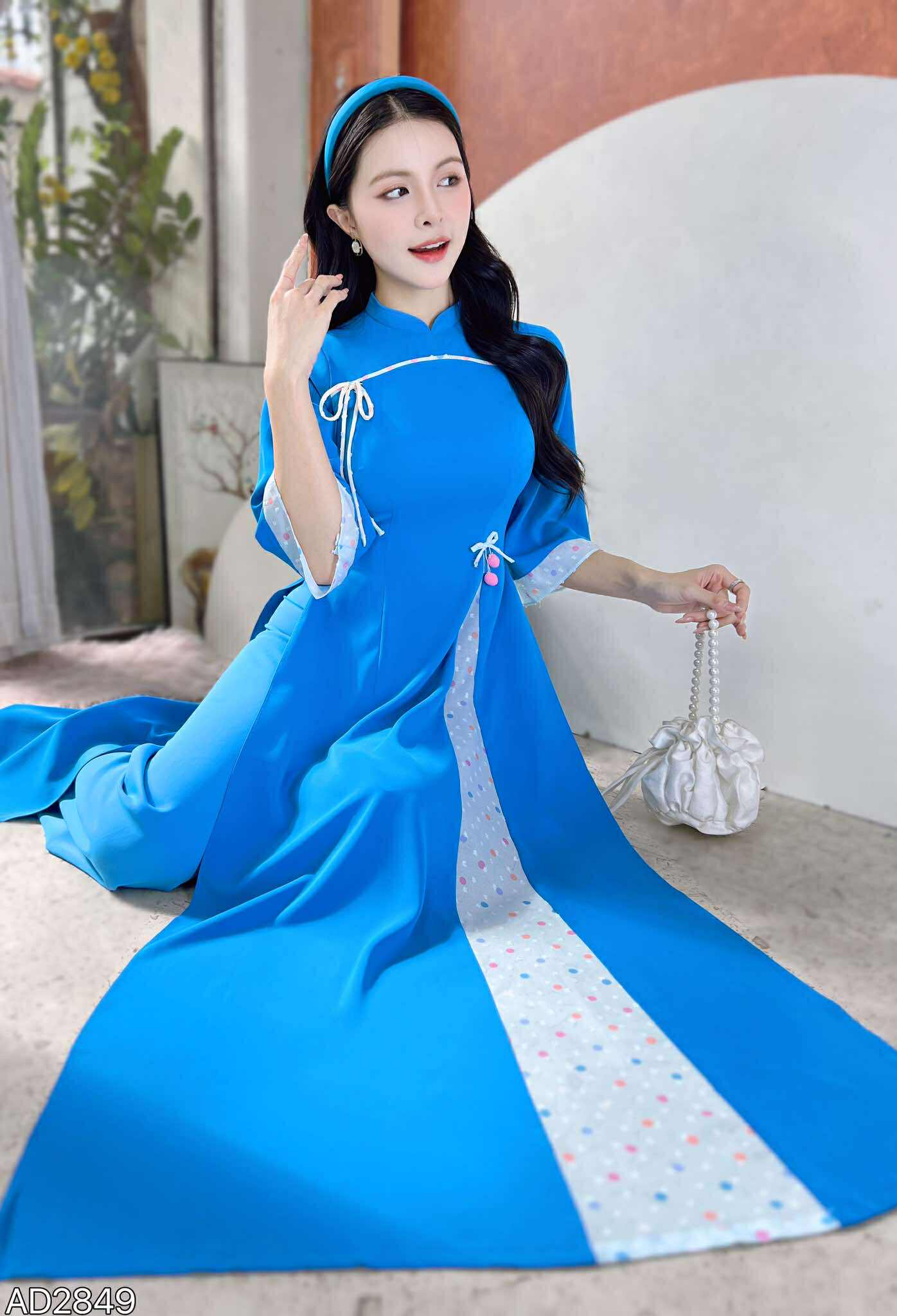 Áo Dài 2 Tà+ Cheri Quế Kèm Phụ Kiện AD9003.2849 (áo lẻ) KHUYẾN MÃI - ƯU ĐÃI
