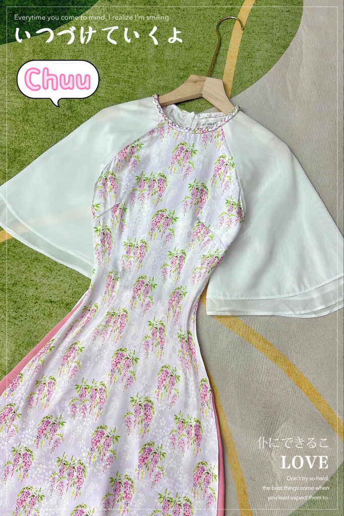 Áo Dài Cổ Tít Tay Tơ AD1417 (áo lẻ) KHUYẾN MÃI - ƯU ĐÃI