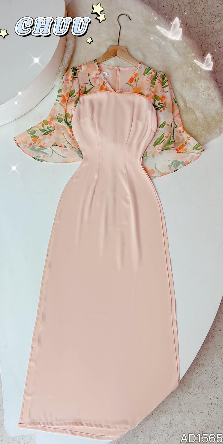 Áo Dài Cổ V tay Xòe AD1565 (áo lẻ) KHUYẾN MÃI - ƯU ĐÃI