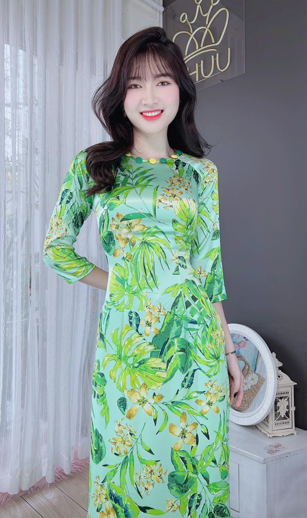 Áo Dài Hoa 2 Da Cúc Bọc AD8014 (áo lẻ) KHUYẾN MÃI - ƯU ĐÃI