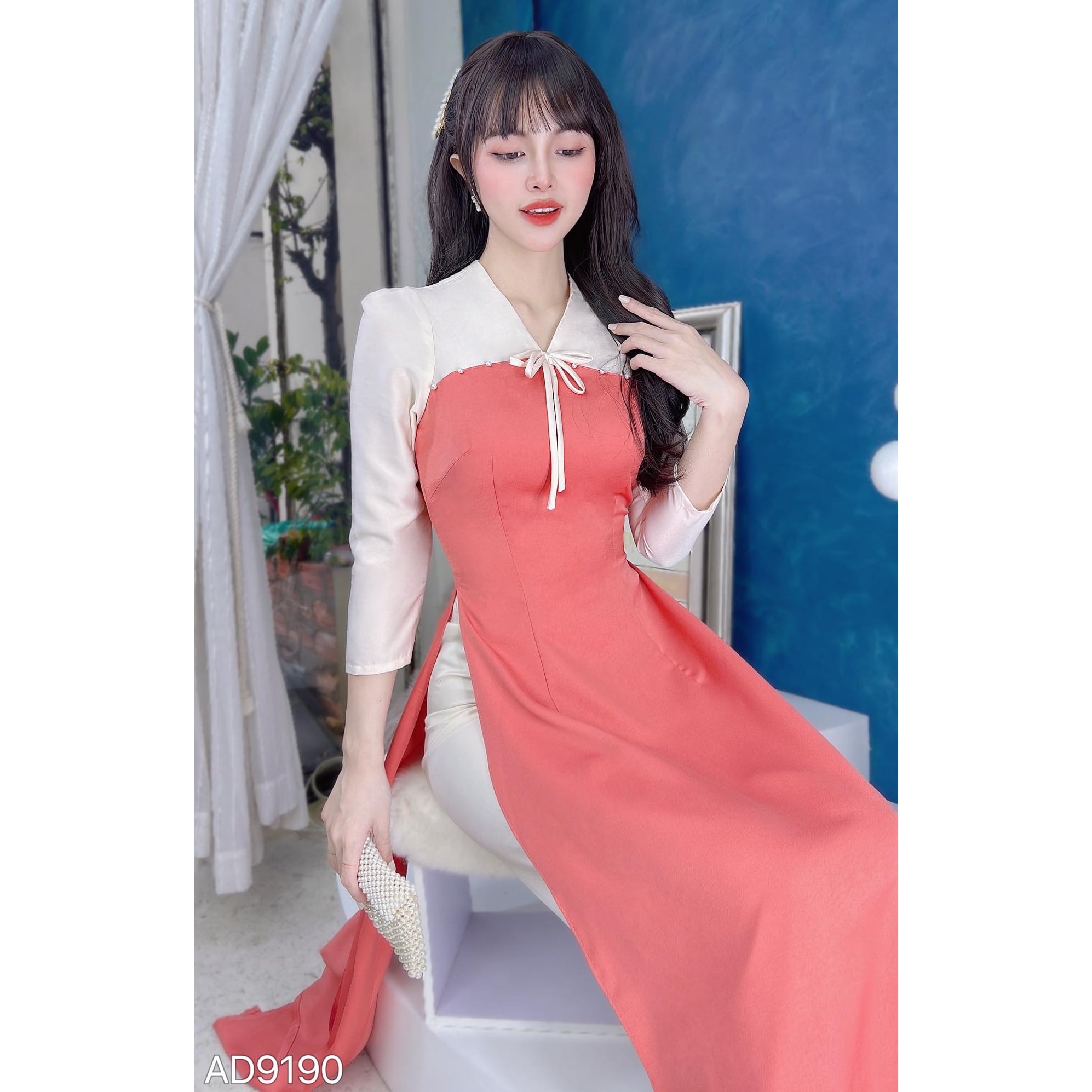 Áo Dài Hoa 4 Cánh AD9190 (áo lẻ) KHUYẾN MÃI - ƯU ĐÃI