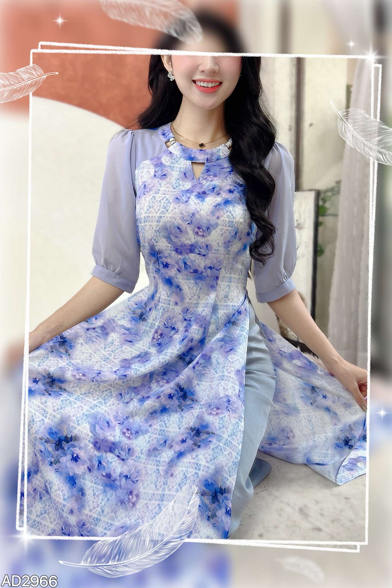 Áo Dài Hoa Ép Kính AD2966 (áo lẻ) KHUYẾN MÃI - ƯU ĐÃI