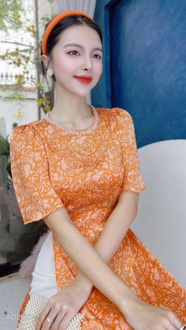 Áo Dài Hoa Hồng Đá AD2691 (áo lẻ) KHUYẾN MÃI - ƯU ĐÃI