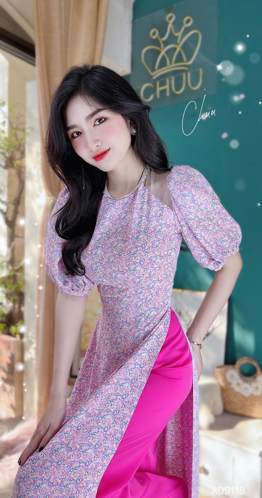 Áo Dài Hoa Ren Cầu Vồng AD9118 (áo lẻ) KHUYẾN MÃI - ƯU ĐÃI