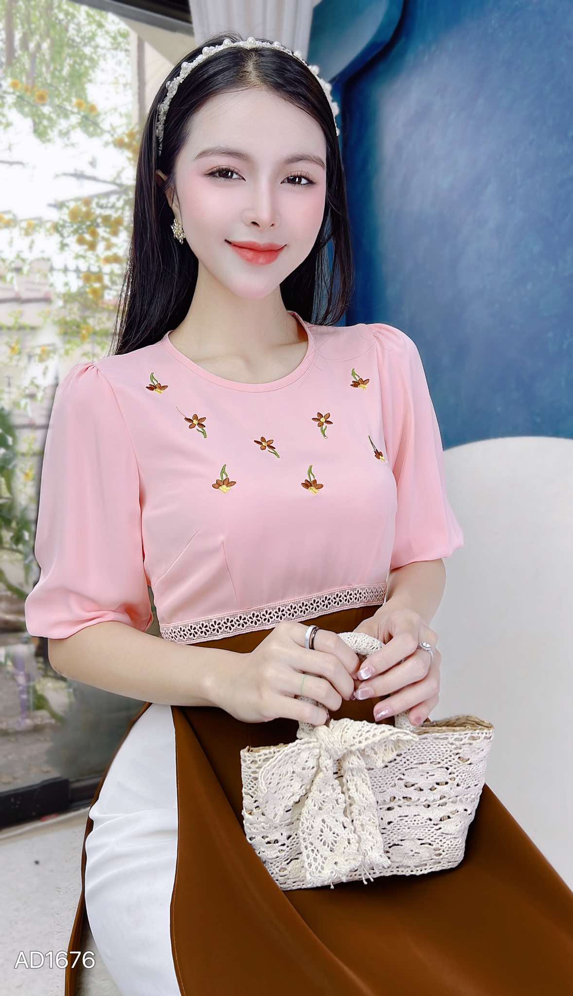 Áo Dài Hoa Thêu Nối Eo AD9001.1676 (áo lẻ) KHUYẾN MÃI - ƯU ĐÃI