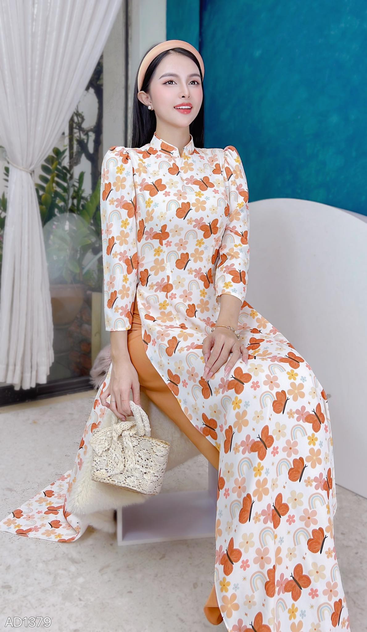 Áo Dài Họa Tiết TT Tay Bồng AD1379 (áo lẻ) KHUYẾN MÃI - ƯU ĐÃI