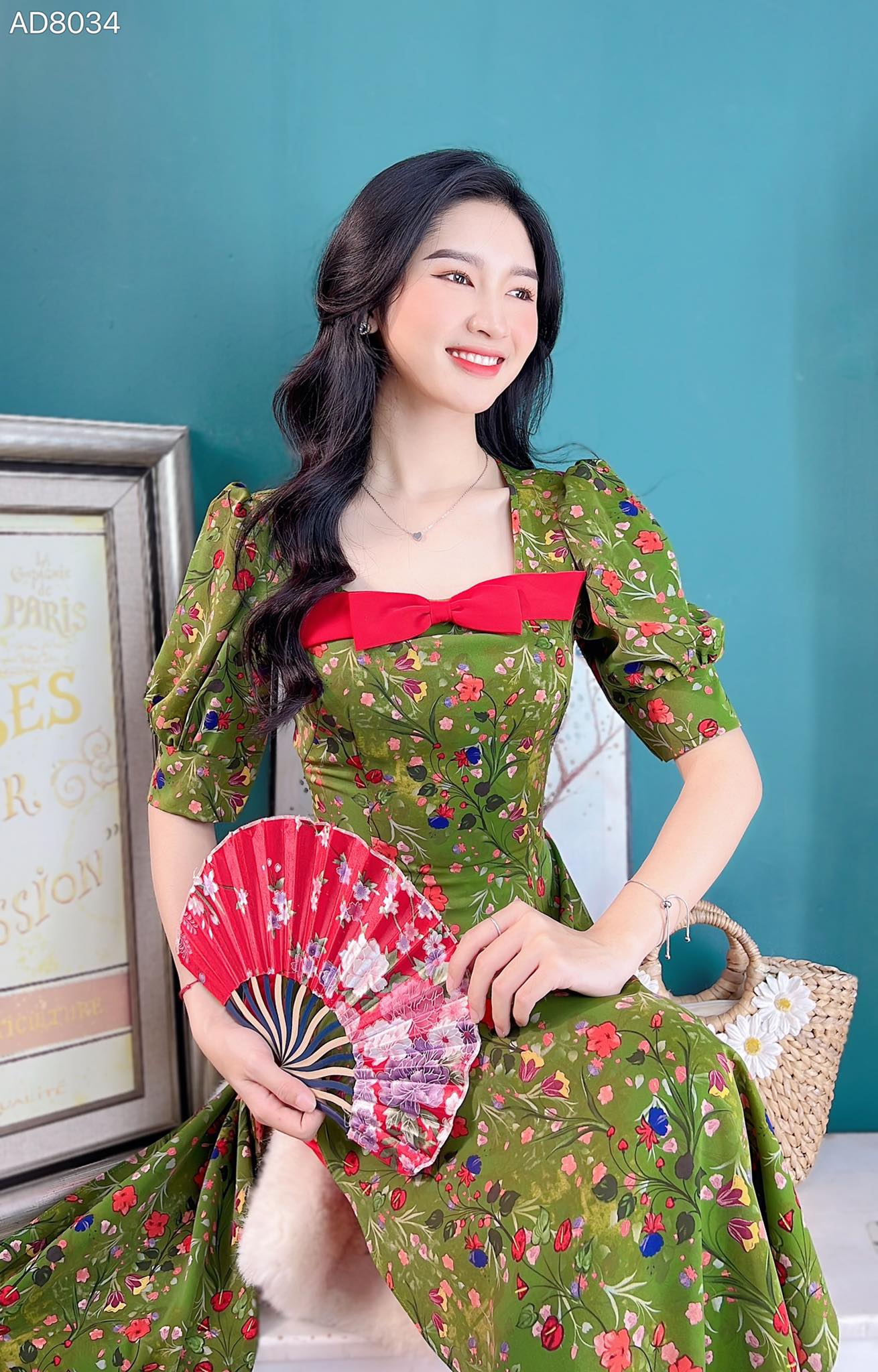 Áo Dài Hoa Vai Nơ Màu AD9034 (áo lẻ) KHUYẾN MÃI - ƯU ĐÃI