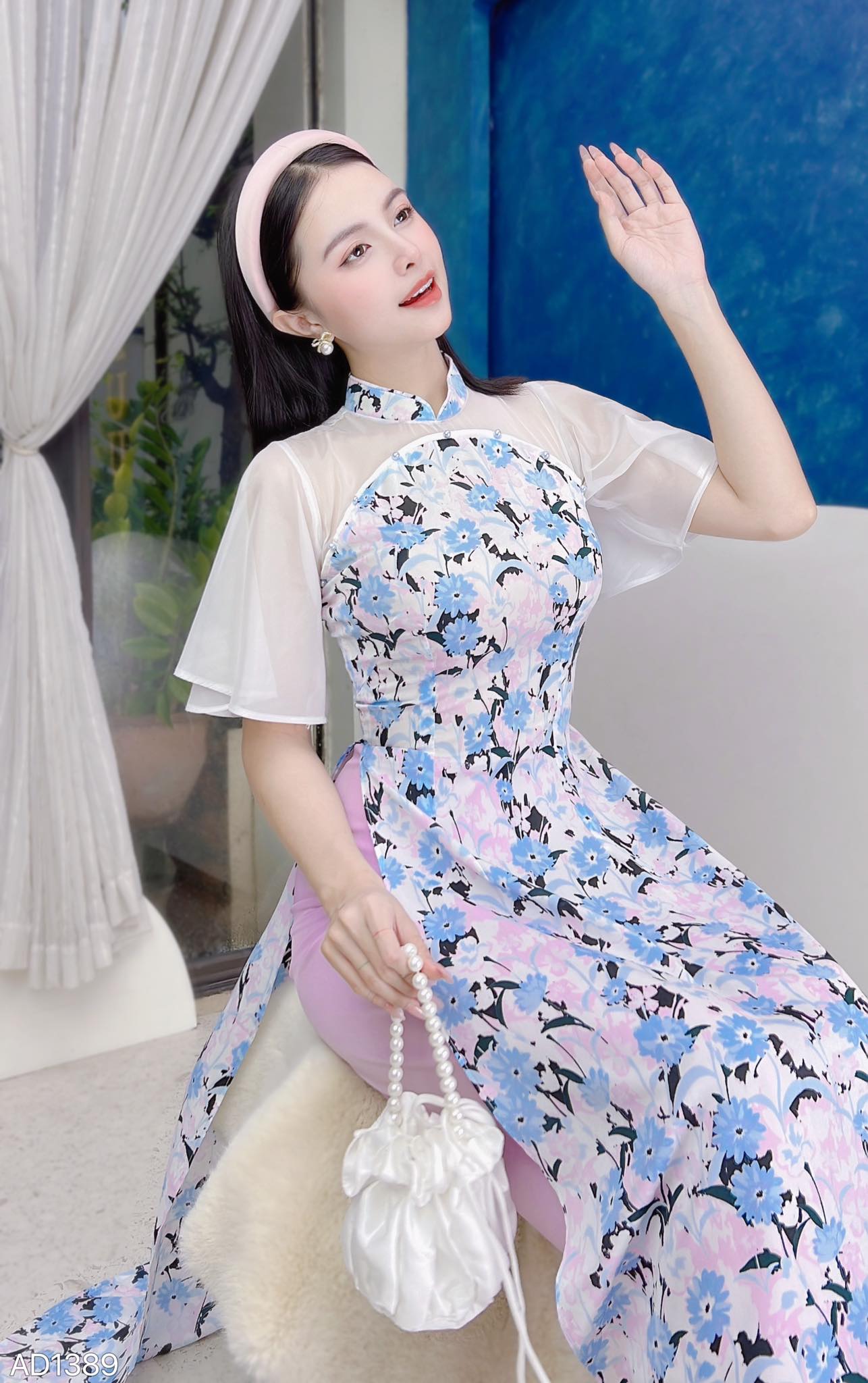 Áo Dài Huệ Chi Tay Nơ AD1389 (áo lẻ) KHUYẾN MÃI - ƯU ĐÃI