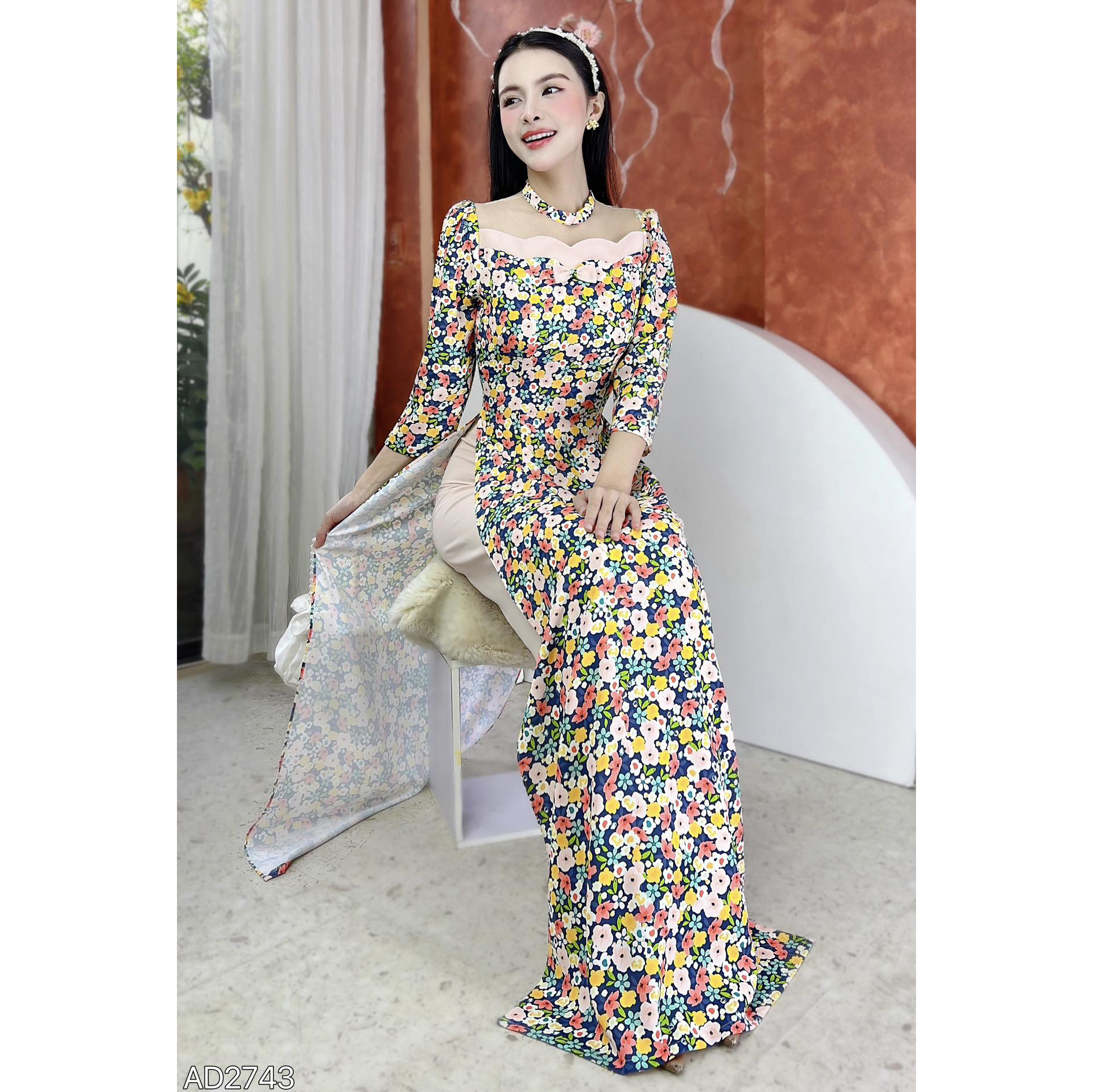 Áo Dài Lưới Cầu Vồng Nhỏ AD2743 (áo lẻ) KHUYẾN MÃI - ƯU ĐÃI