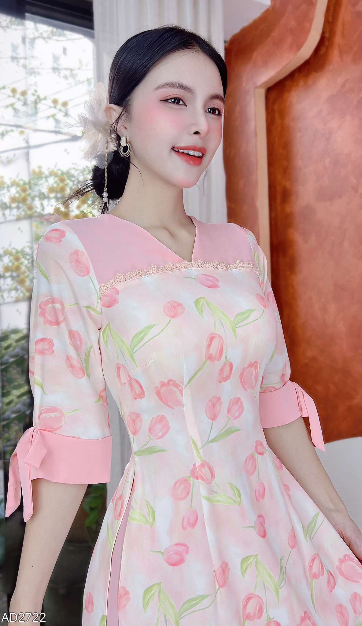 Áo Dài Lựu Hồng AD2722 (áo lẻ) KHUYẾN MÃI - ƯU ĐÃI