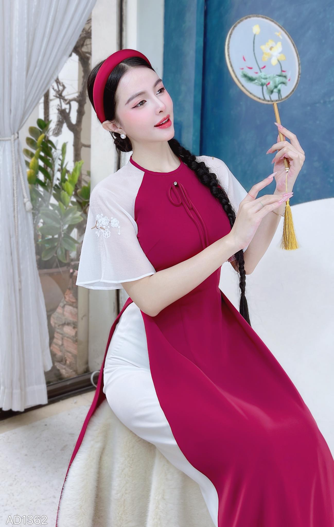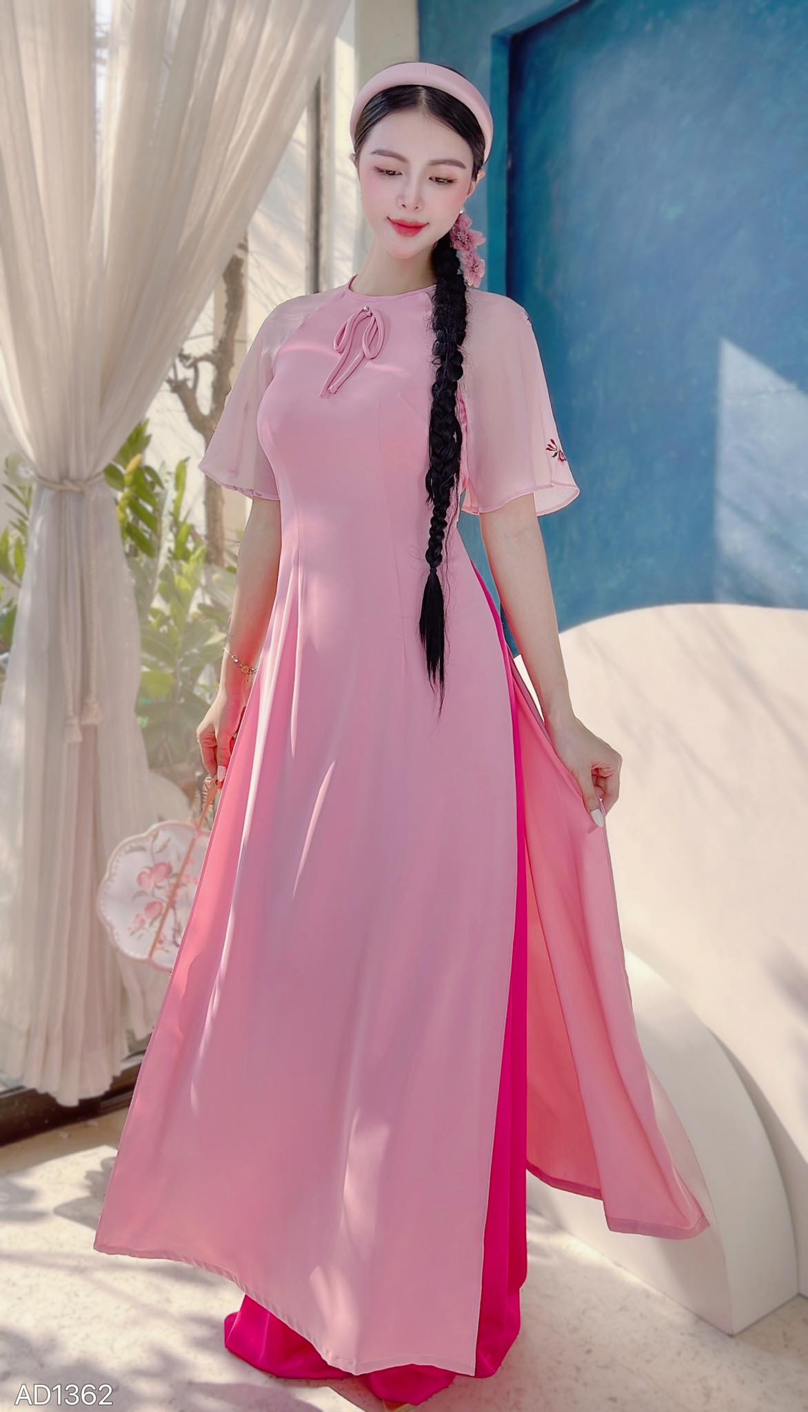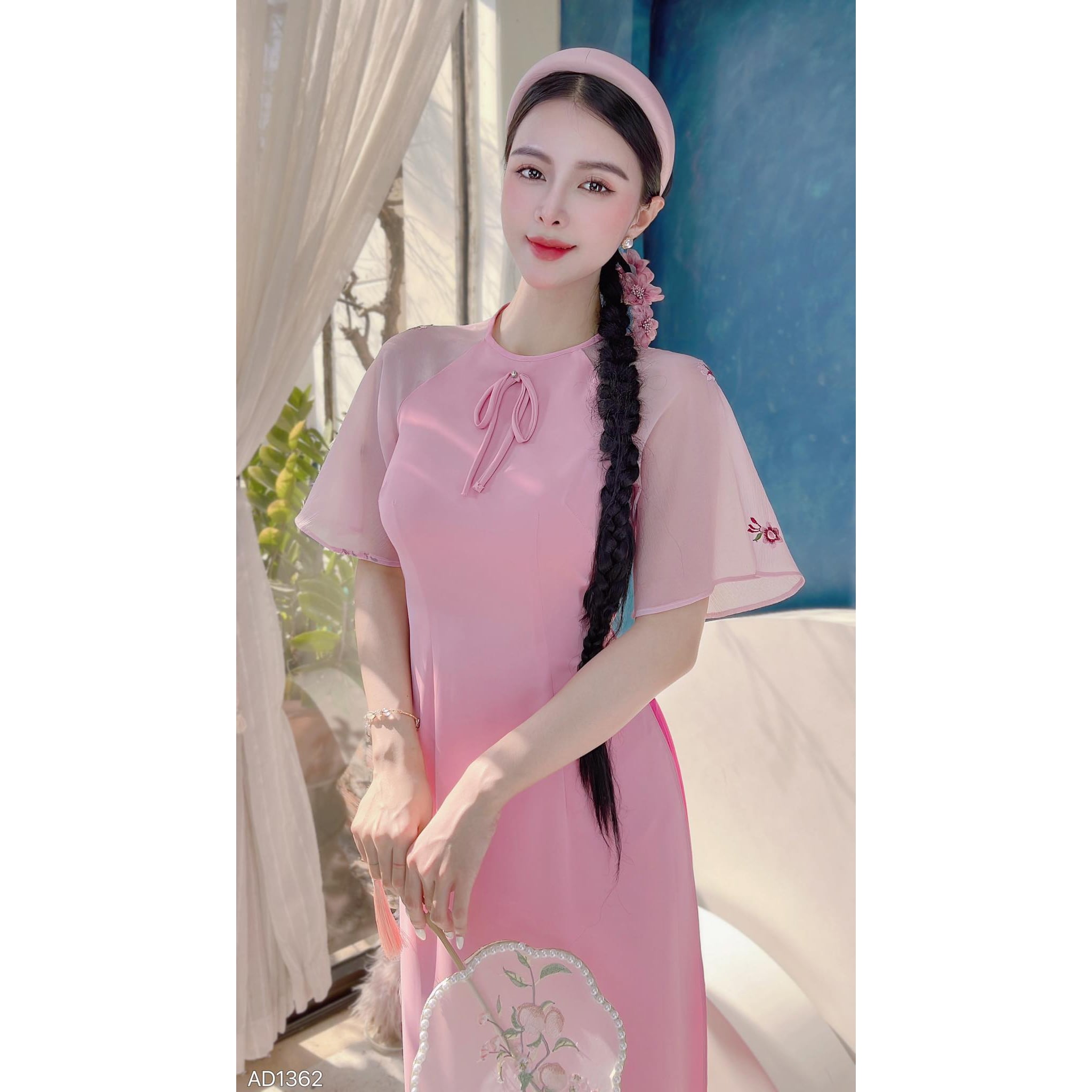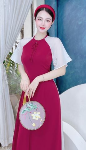 Áo Dài Nơ Tay Thêu Đào AD1362 (áo lẻ)