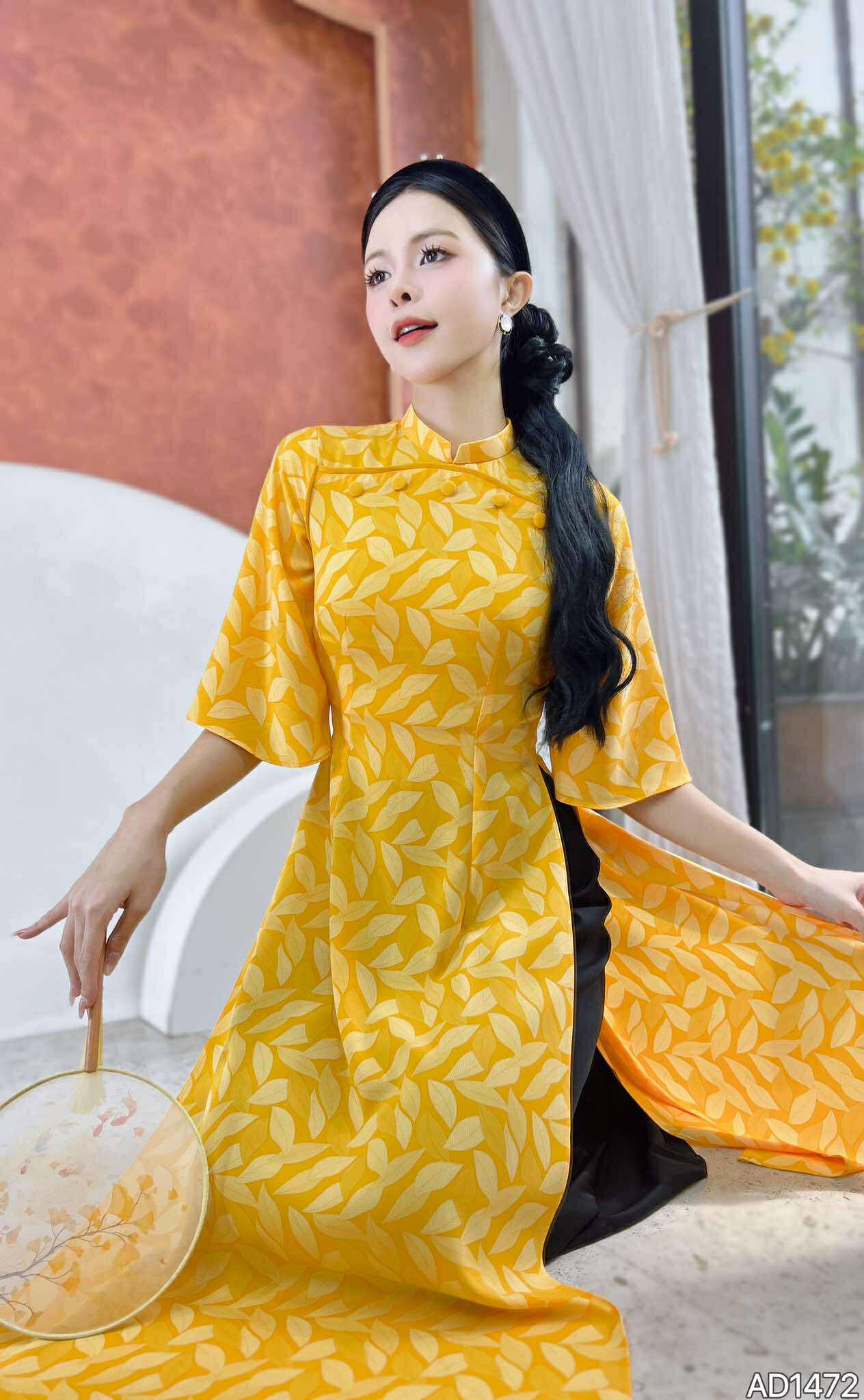 Áo Dài Nút Bọc Lá Bay AD1472 (áo lẻ)