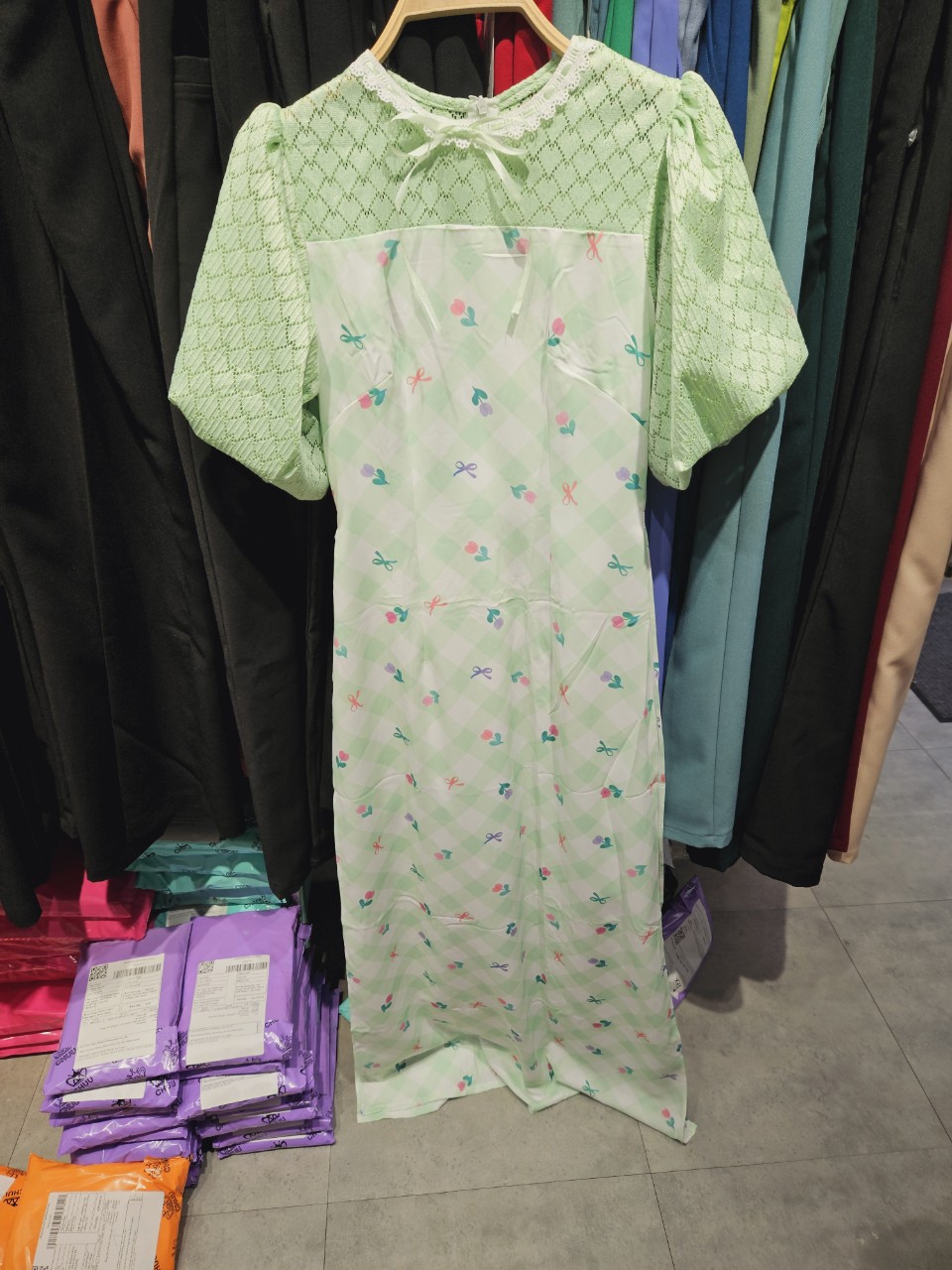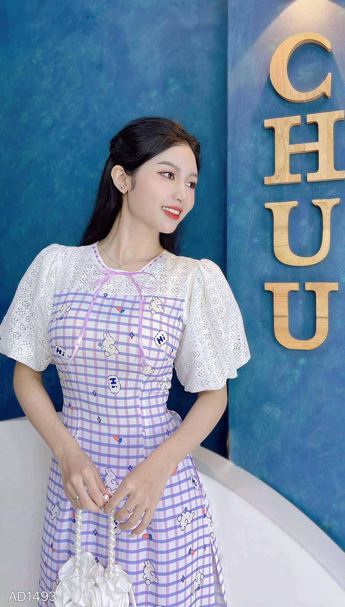 Áo Dài Ren Bồng Ô Vuông AD1493 (áo lẻ) KHUYẾN MÃI - ƯU ĐÃI